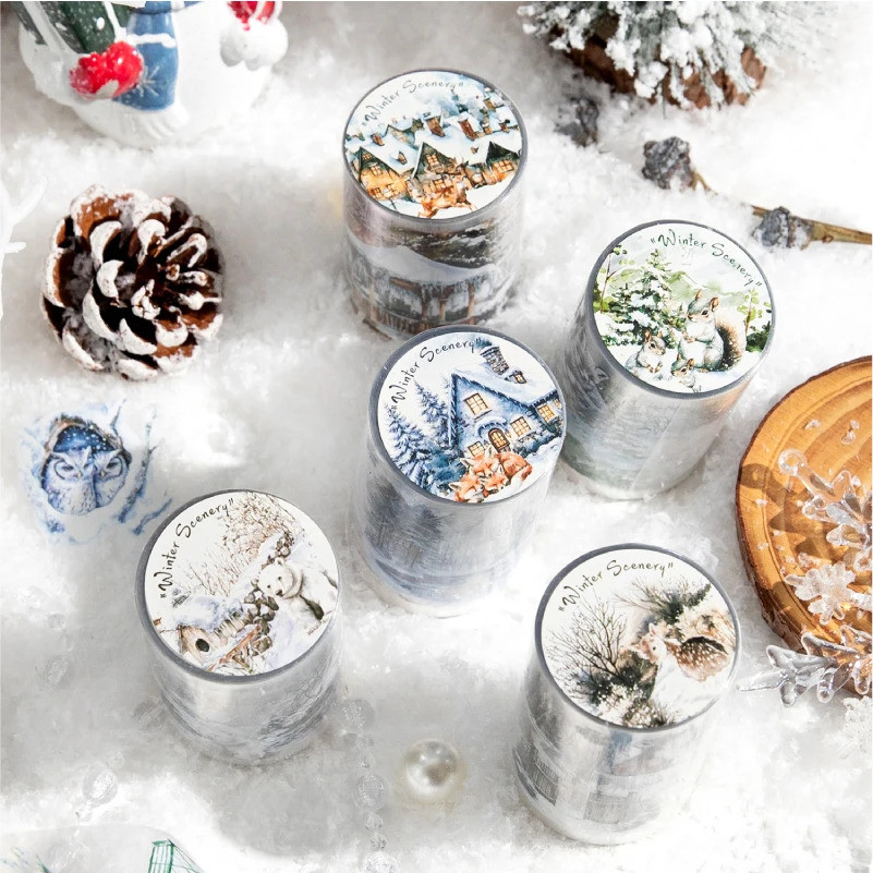 Journal GO 6X200 ซม.ฤดูหนาวฉากหิมะ PET ภูมิทัศน์เทป DIY Collage Junk Journal Scrapbooking ฤดูหนาวกระดาษกาวสติกเกอร์