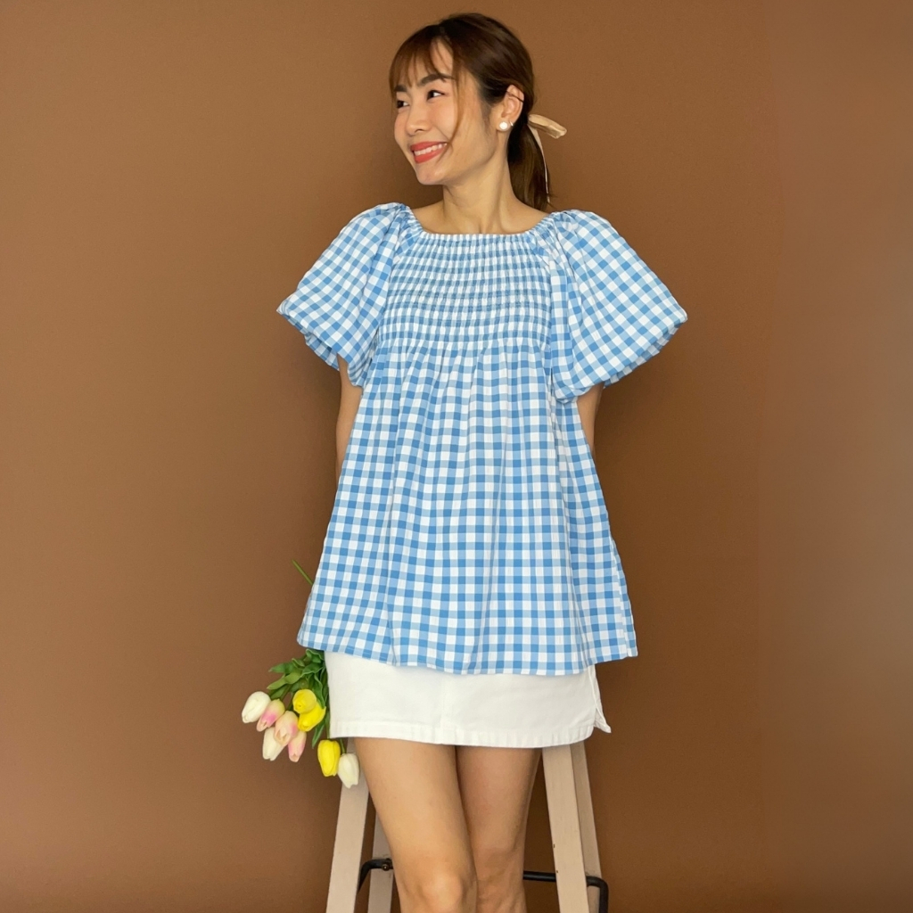 CHAWY Gingham puff shirt ✨🥐 C4757 เสื้อแขนพอง เสื้อแขนตุ๊กตา