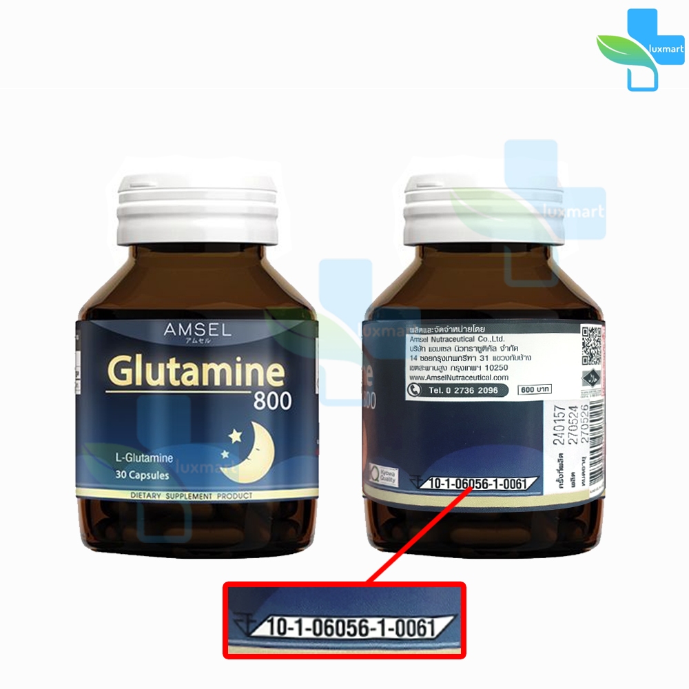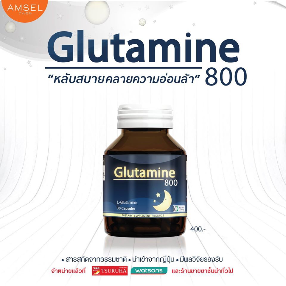 Amsel Glutamine 800 แอมเซล กลูตามีน 30 แคปซูล [1 ขวด] AA 6105 ช่วยให้นอนหลับสนิท ลดความเครียด