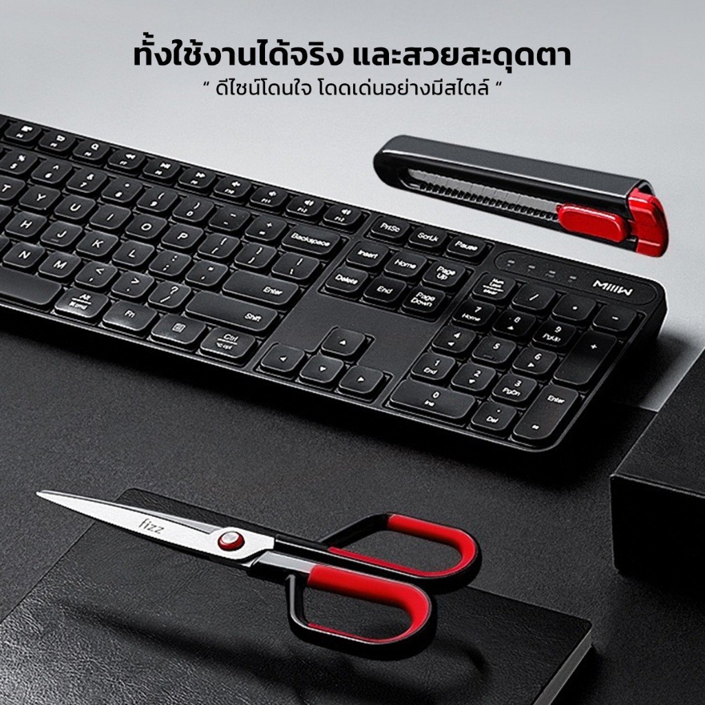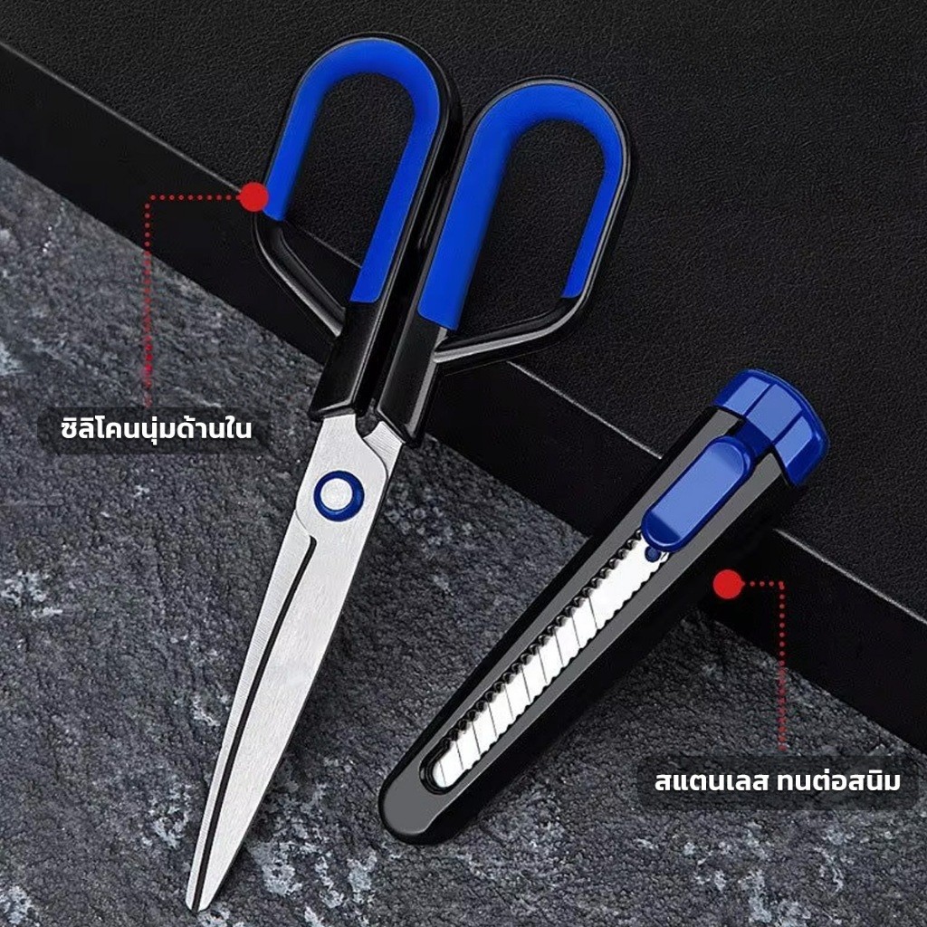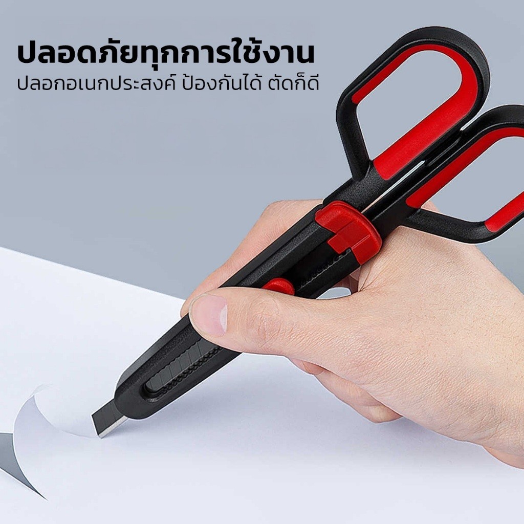 FIZZ กรรไกร / คัทเตอร์ 2in1 ใบมีดเคลือบฟลูออรีน คมกริบ เป็นกรรไกรและตรงปลอกเป็นคัทเตอร์ในตัว ตัดเทปกาวได้ ไม่มีคราบกาว
