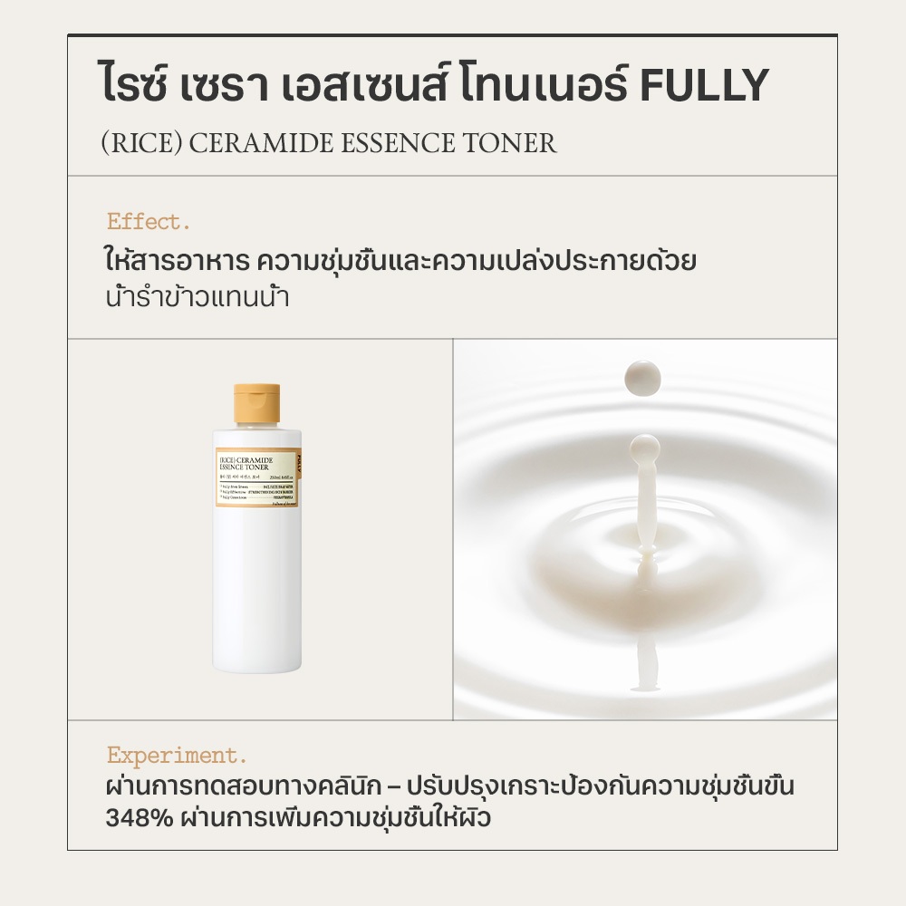 [FULLY Official] Rice Ceramide Essence Toner 250ml | โทนเนอร์ 2 in 1 | เติมความกระจ่างใสลึก | บำรุงเกราะป้องกันผิว | รำข้าว | Ceramide จากข้าว | วีแกน PDRN จากข้าว | แนะนำสำหรับดูแลผิวตอนกลางคืน
