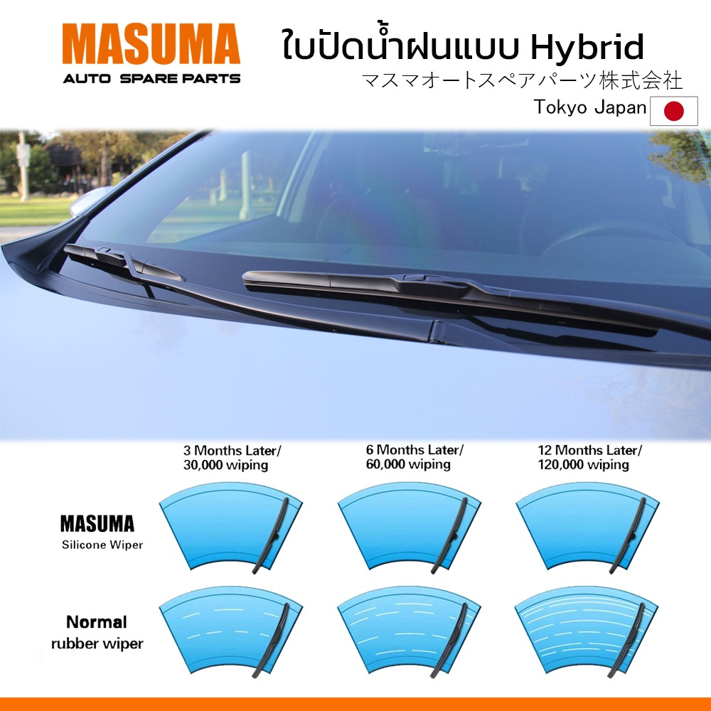 MASUMA ใบปัดน้ำฝน ก้านแบบ HYBRID สำหรับรถยนต์ที่ใช้ก้านแบบ U-HOOK (ก้านตะขอเกี่ยว) ใบเดี่ยว เลือกขนาดได้