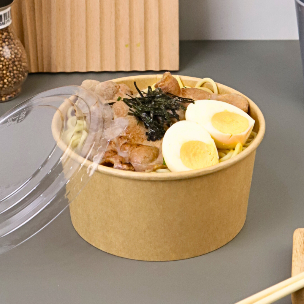 Boxjourney กล่องอาหารทรงกลม รุ่น Lite พร้อมฝา PET Anti-Fog ขนาด 500–1100 ml (สีคราฟท์) (25 ชิ้น/แพ็ค)
