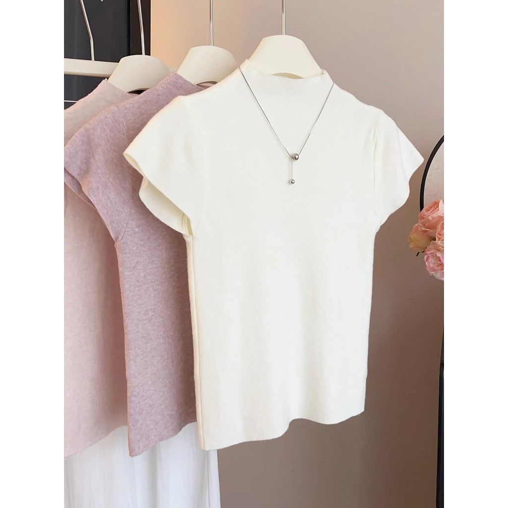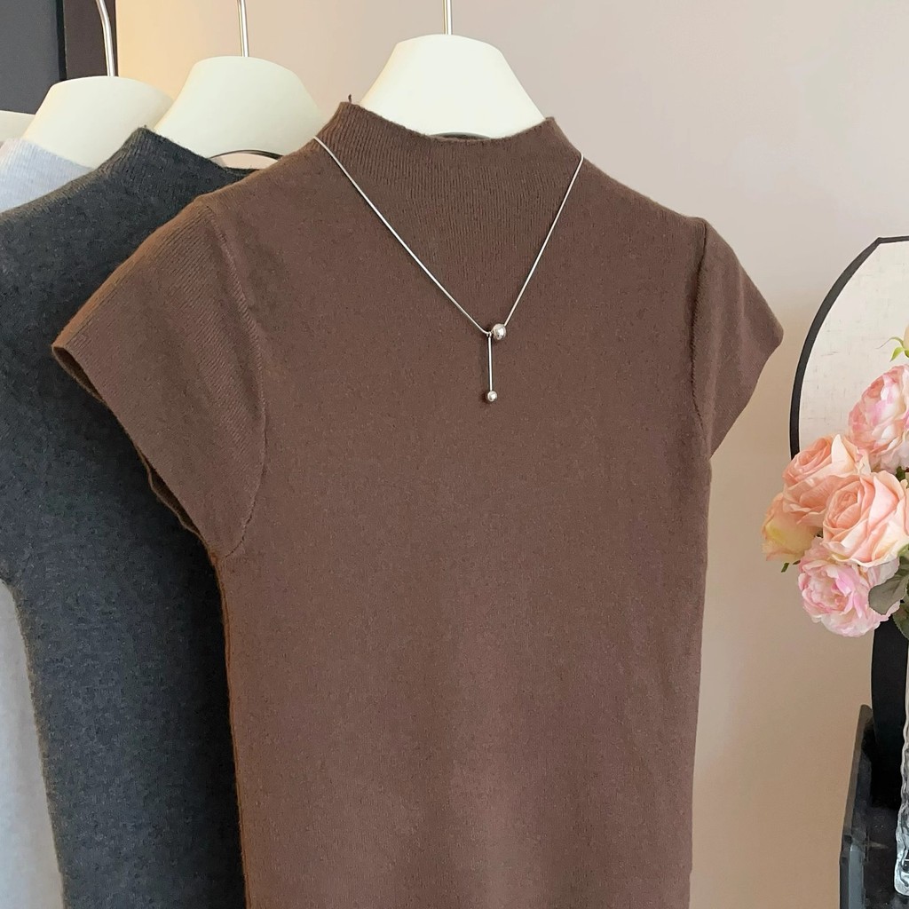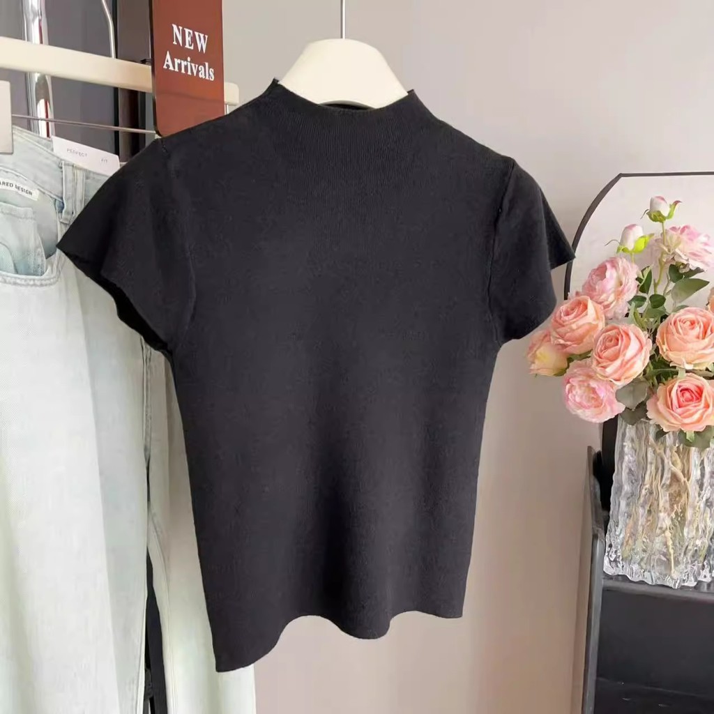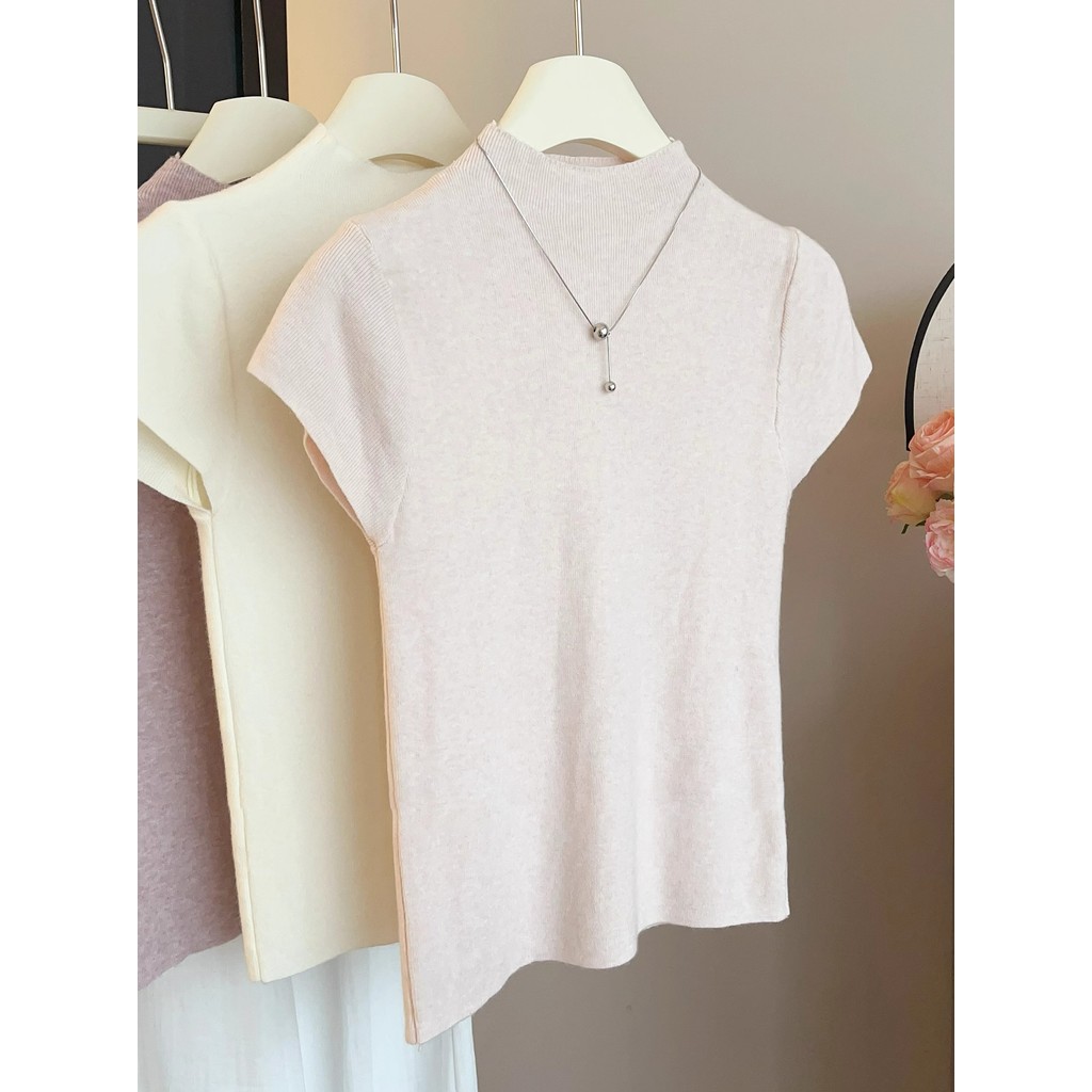 GAKKI เสื้อยืดคอสูงแขนสั้นผู้หญิง เสื้อสเวตเตอร์ผู้หญิง รุ่นใหม่ ฟรีไซส์ รุ่น 3220#