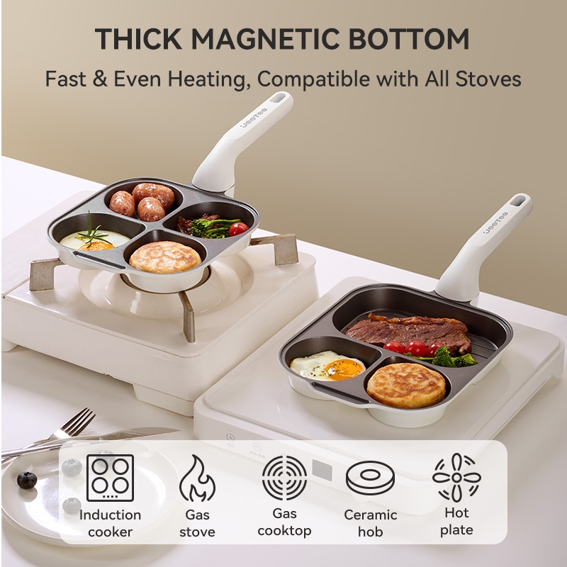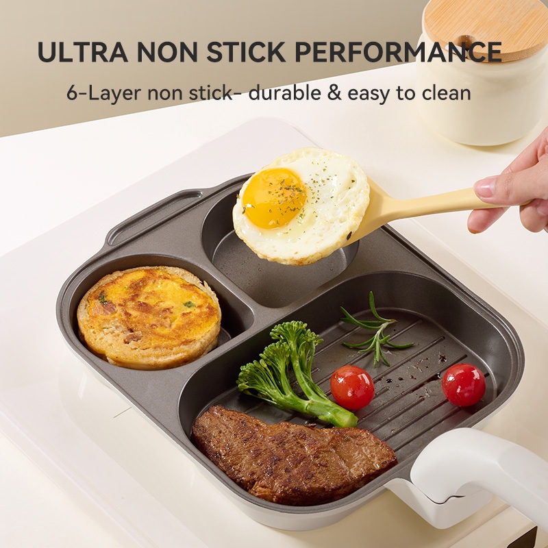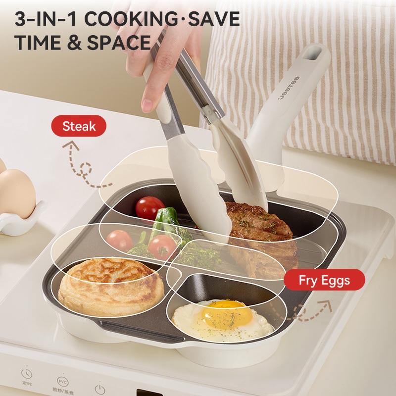 JEETEE ไทเทเนียมเซรามิก กระทะทอด กระทะไข่ดาว 2+1กระทะ ไข่สำหรับมื้อเช้า กระทะย่างอเนกปร ปลอดสารพิษ เหมาะกับเตาทุกประเภท