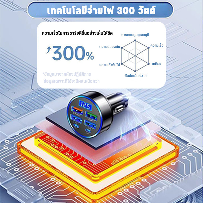 ที่ชาร์จแบตในรถอะแดปเตอร์ หลายพอร์ต 4USB+2PD 300w Super Fast charge ที่ ชาร์จ แบต ใน รถ อะแดปเตอร์