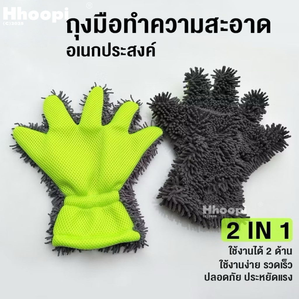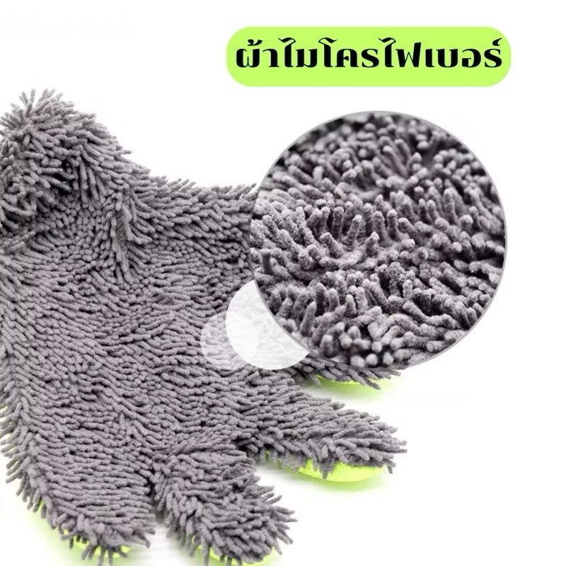 2in1 ถุงมือล้างรถ ถุงมือตัวหนอน ถุงมือล้างรถยนต์ ถุงมือล้างรถผ้าไมโครไฟเบอร์ ถุงมือทำความสะอาดรถ Mst