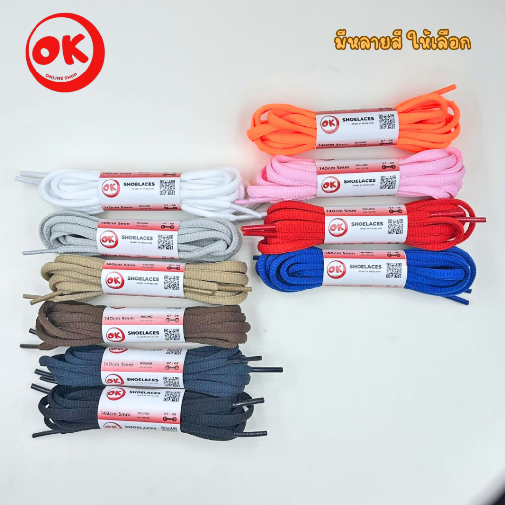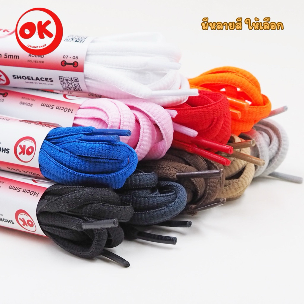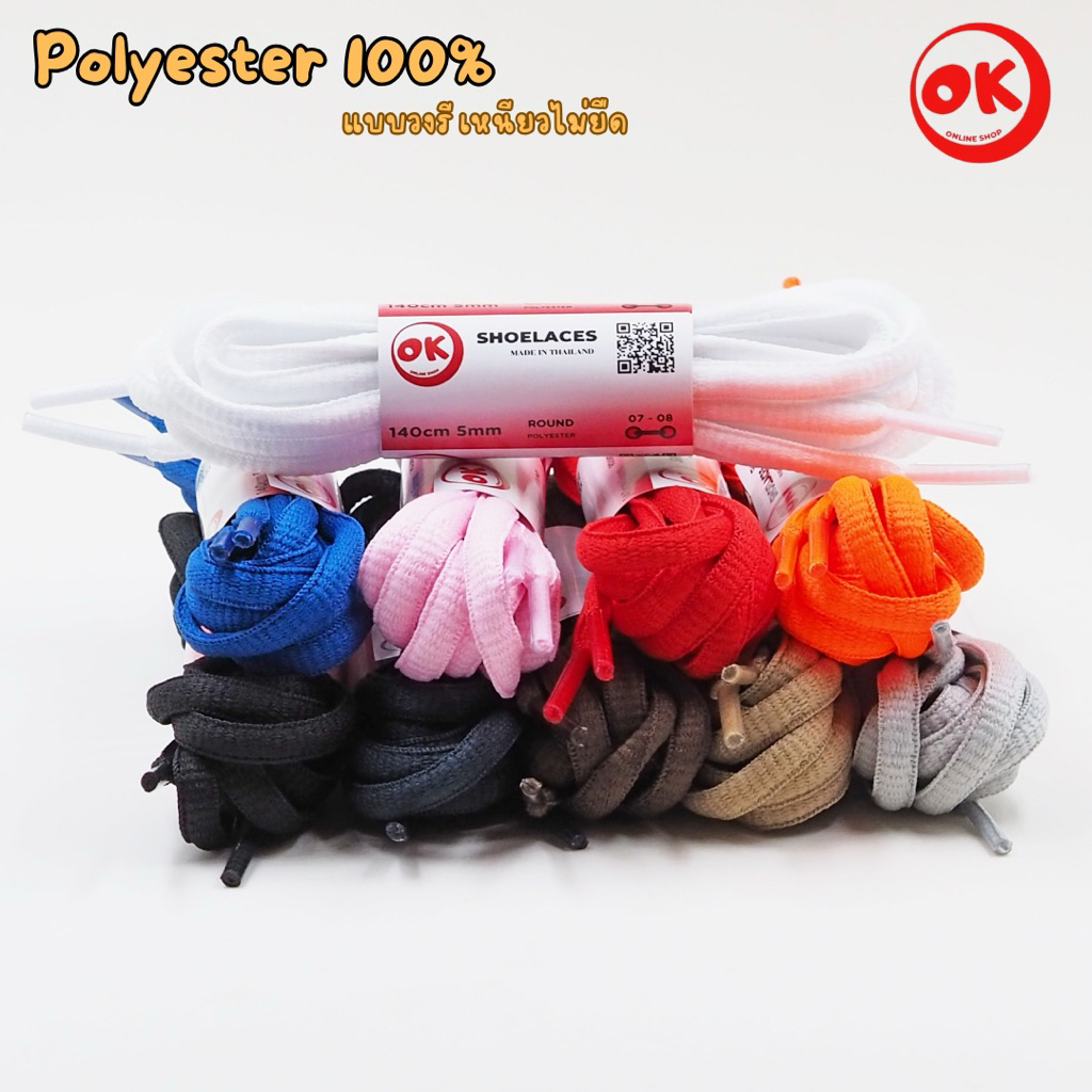 เชือกรองเท้า (1คู่) Ok Shoelace Polyester 100% แบบวงรี 7mm ถักแน่น ไม่ฟูง่าย พร้อมส่งในไทย