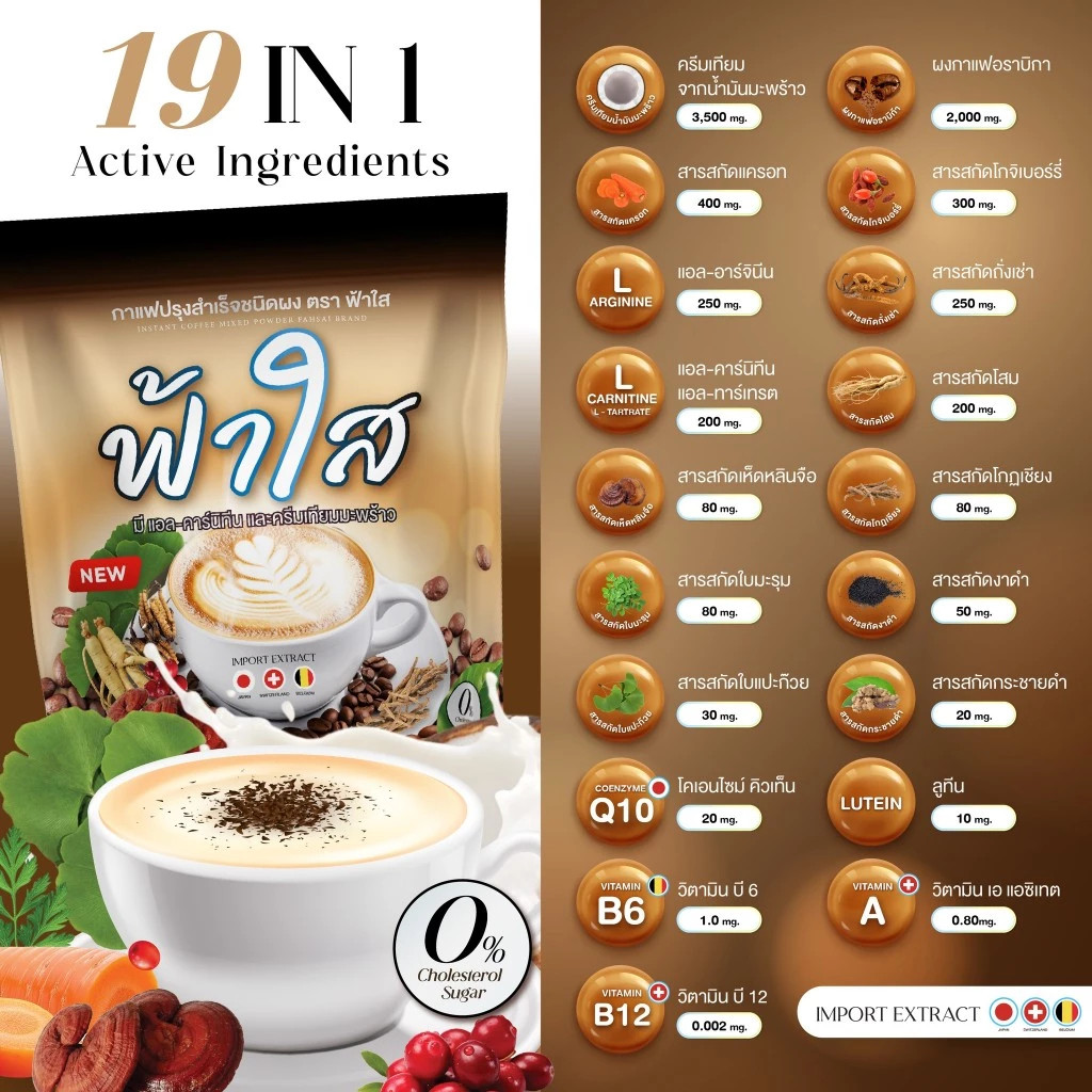 🦌{1แถม1}☕️New fahsai coffee กาแฟฟ้าใส กาแฟเพื่อสุขภาพ แคลน้อย ไหอม อร่อย ม่มีน้ำตาล 1ห่อ20ซอง