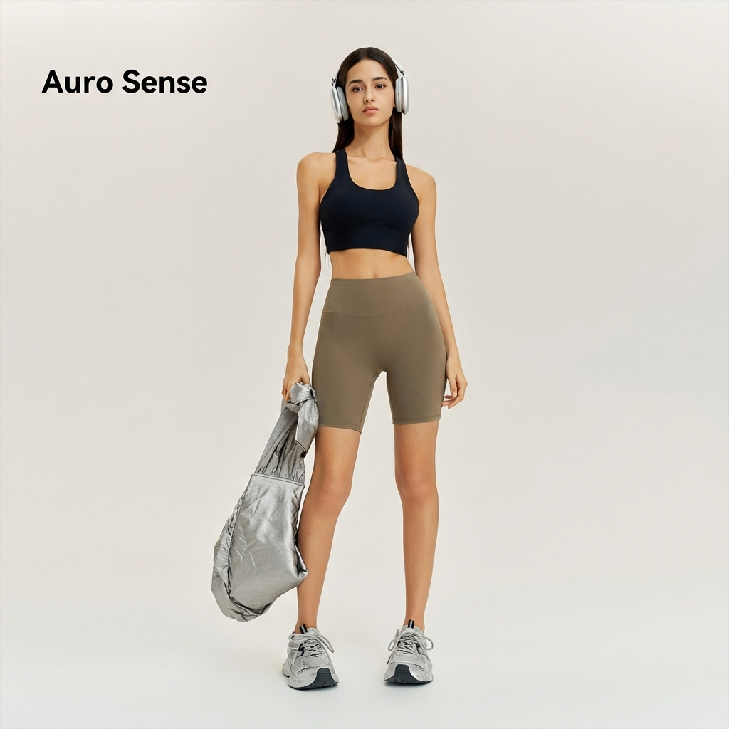 Auro Sense gym กางเกงโยคะเอวสูง กางเกงวิ่ง ความยาว 3 ส่วน เล่นกีฬา และ การสวมใส่ประจำวัน
