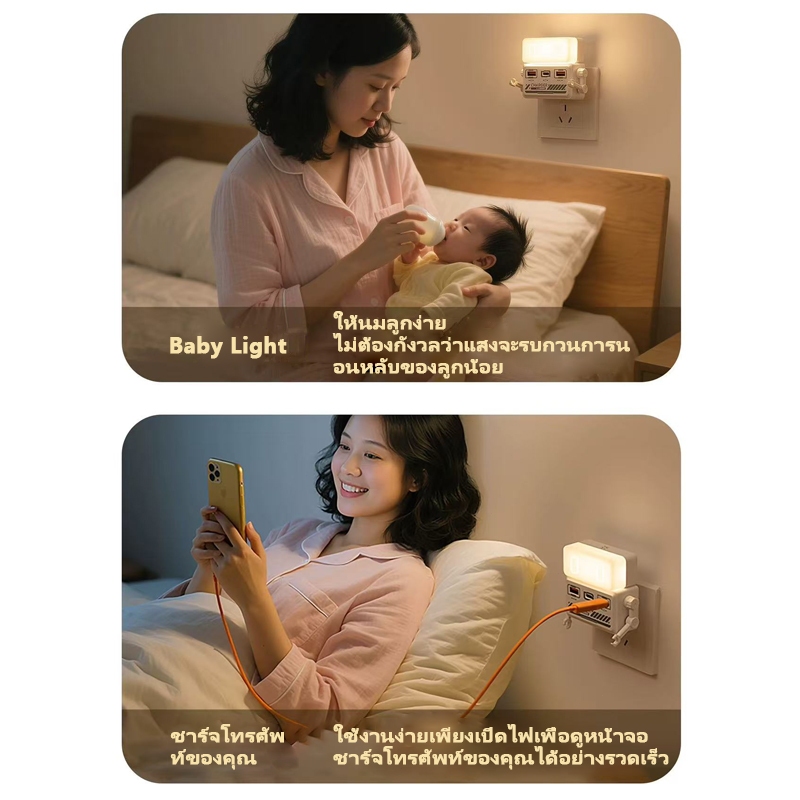 NETPAC LED Night Light Plug-In Voice Controlled เปิดได้ 3 แสง แบบพกพา โคมไฟหัวเตียง