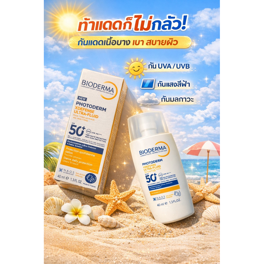 New!! Bioderma Photoderm XDefense Ultra-Fluid SPF50+ กันแดดเนื้อบางเบา กัน UVA UVB แสงสีฟ้า มลภาวะ 40ml