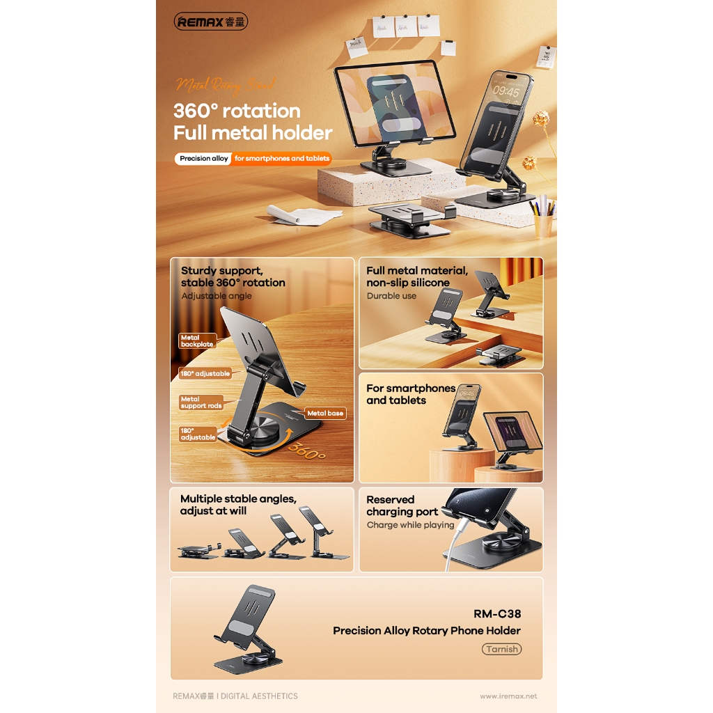 REMAX ที่วางโทรศัพท์ แบบตั้งโต๊ะพับเก็บได้ หมุนได้ 360 องศา ขนาดเล็ก กะทัดรัด พกพาสะดวก RM-C38