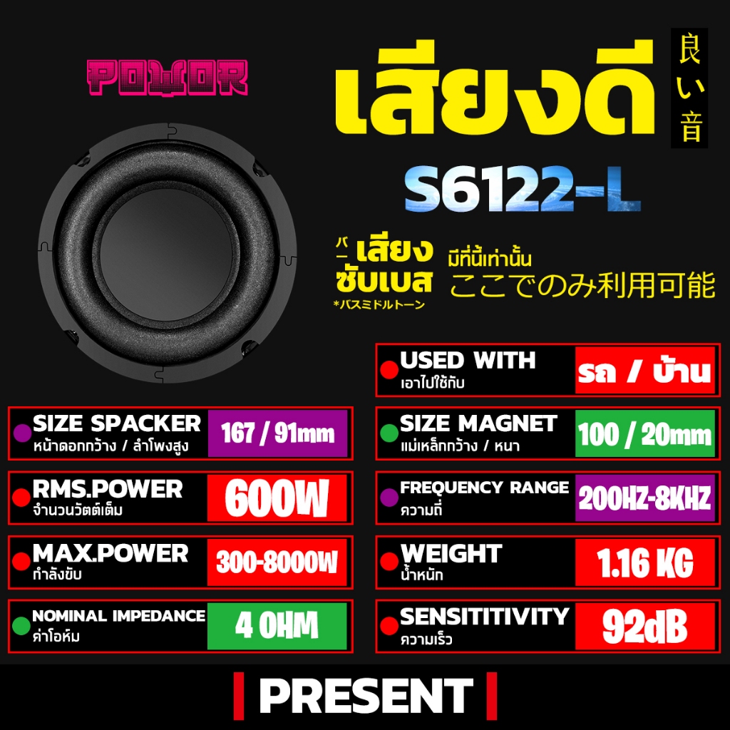 BA SOUND ลำโพงซับ 6.5 นิ้ว 600W 4OHM S6122L ดอกลำโพง 6.5 นิ้ว ลำโพงซับวูฟเฟอร์ขนาด 6.5นิ้ว ลำโพงรถยนต์ ลำโพงบ้าน ดอกซับ
