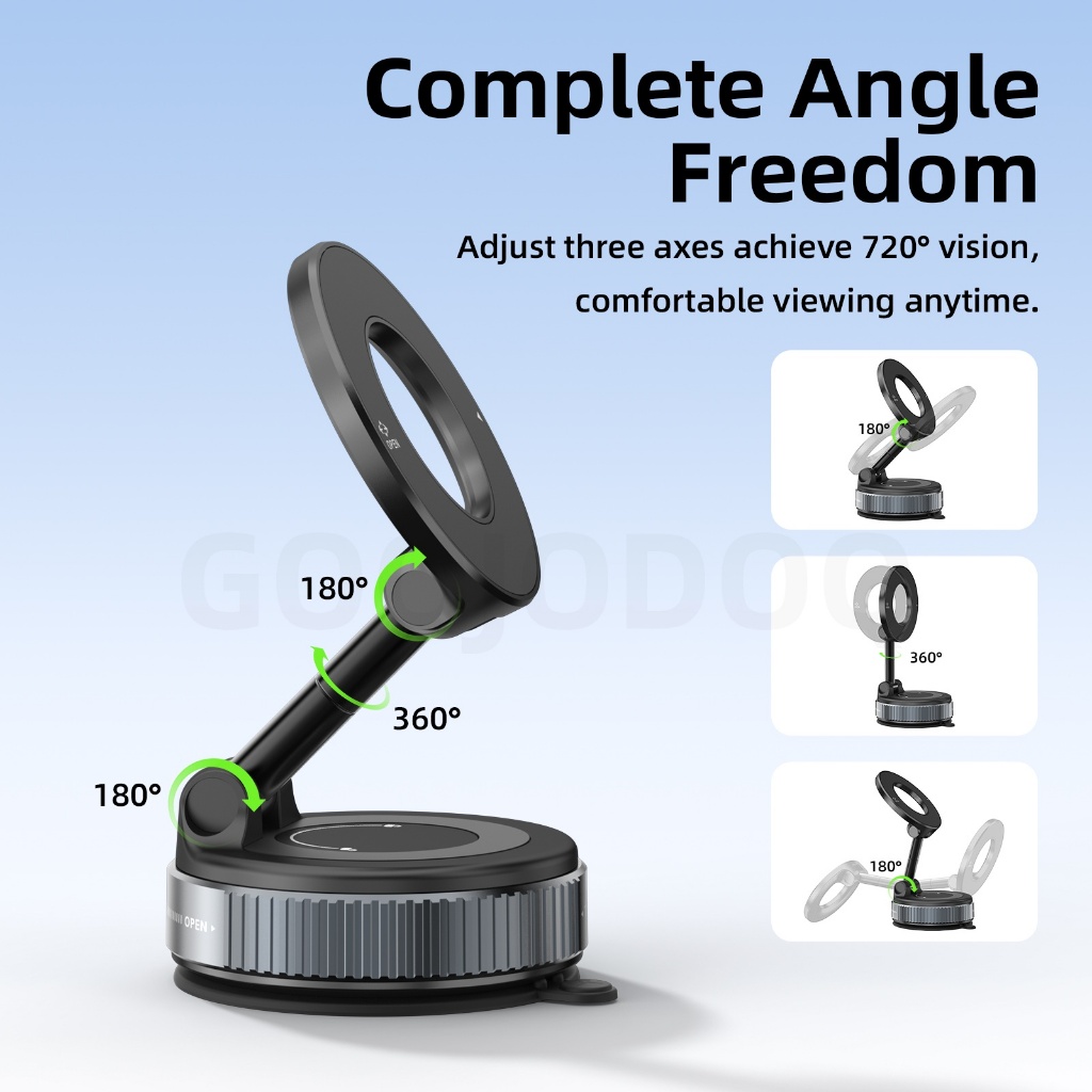 GOOJODOQ ติดตั้งรถตั้งแม่เหล็กถ้วยดูดสูญญากาศที่มีประสิทธิภาพมุมมองที่ยืดหยุ่นเข้ากันได้กับโทรศัพท์ทั้งหมด