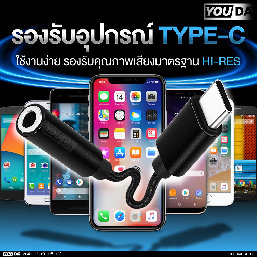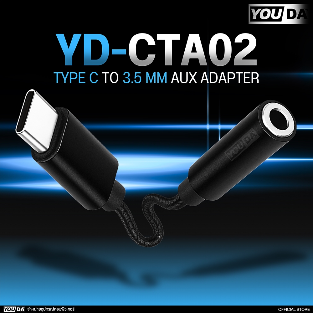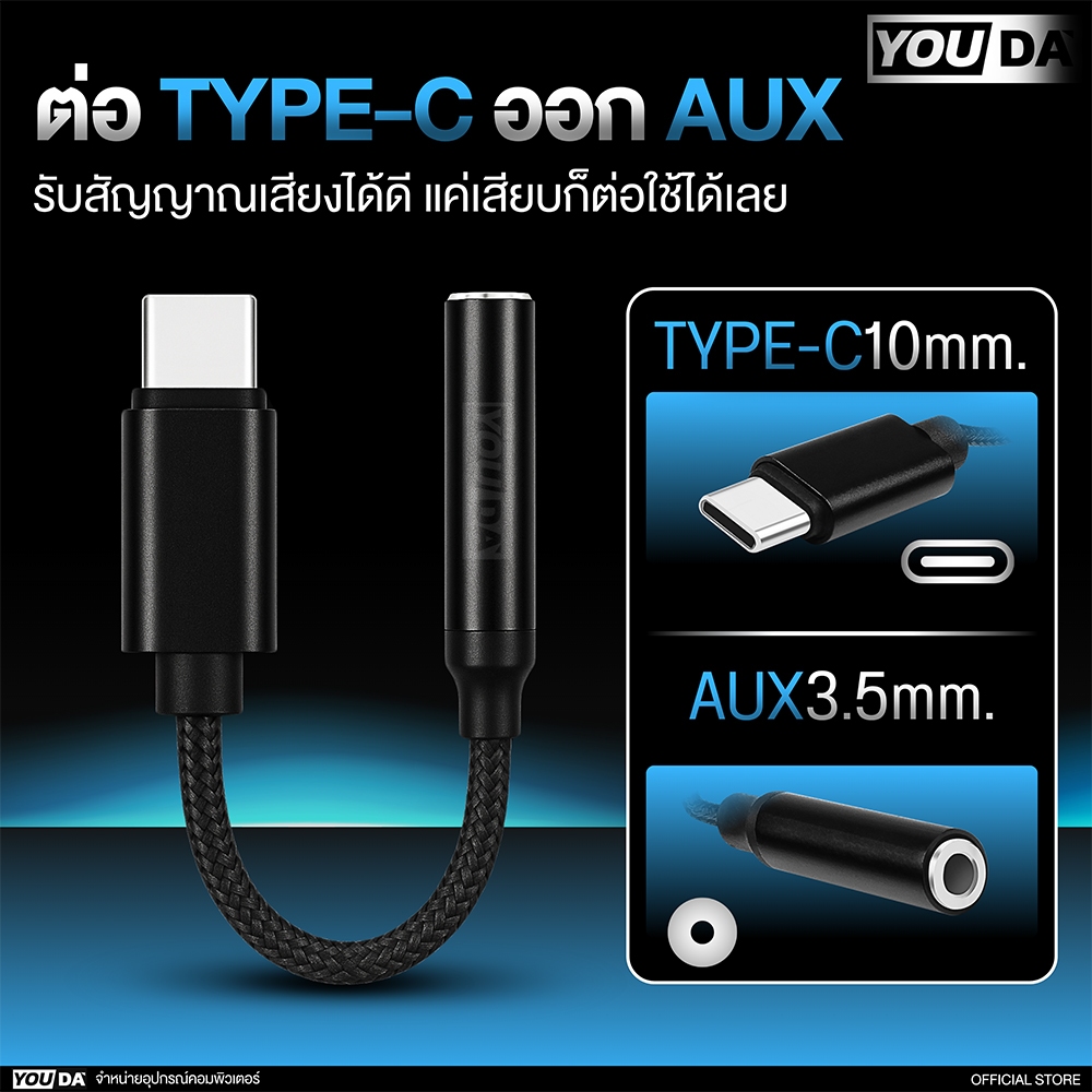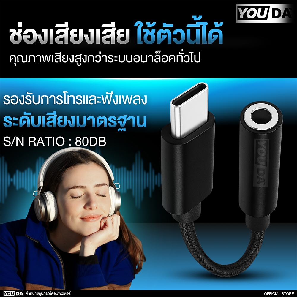 YOUDA อะแดปเตอร์หูฟัง Type C 3.5 รับประกัน 1ปี หูฟังอะแดปเตอร์สายสัญญาณเสียง YD-CTA02 หัวแปลง Type-C to 3.5mm สายแปลง
