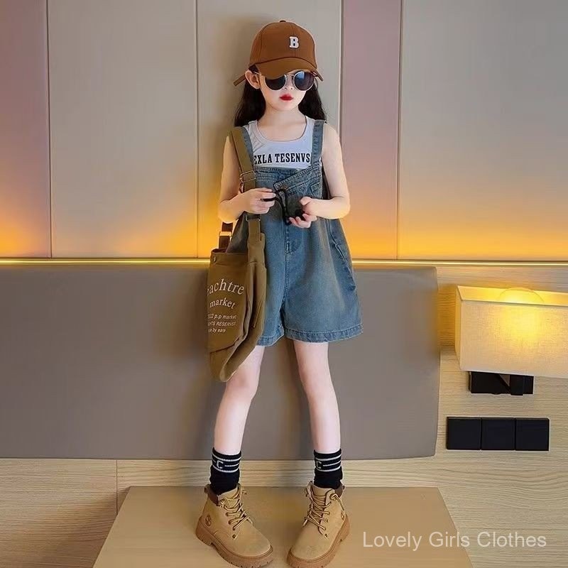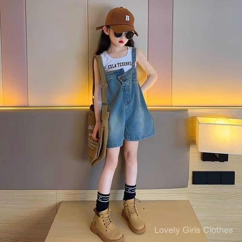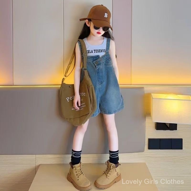 ชุดเอี๊ยมเด็กผู้หญิง 2025 เสื้อผ้าเด็กใหม่ กางเกงยีนส์เด็กผู้หญิง