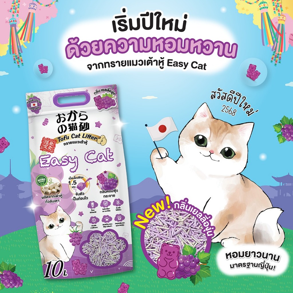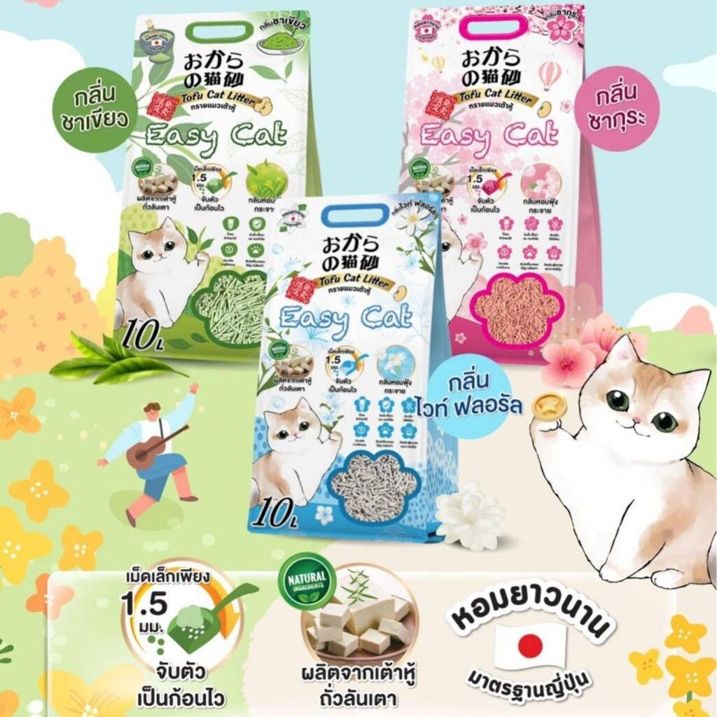 [10 ลิตร] EASY CAT ทรายเต้าหู้ อีซี่แคท ปราศจากฝุ่น ดับกลิ่นดีเยี่ยม จับตัวเร็ว ทิ้งชักโครกได้ EASY CAT. [10 ลิตร]