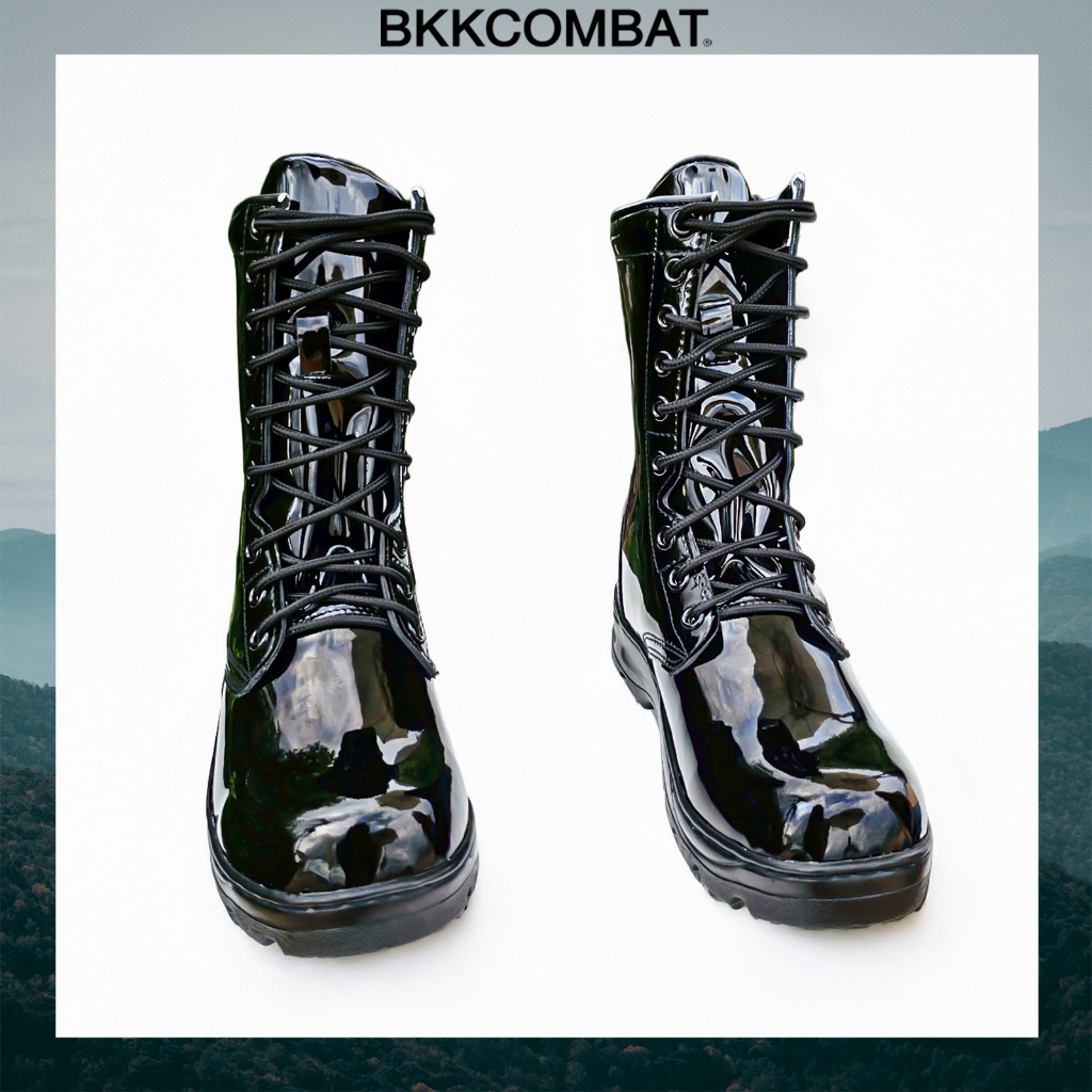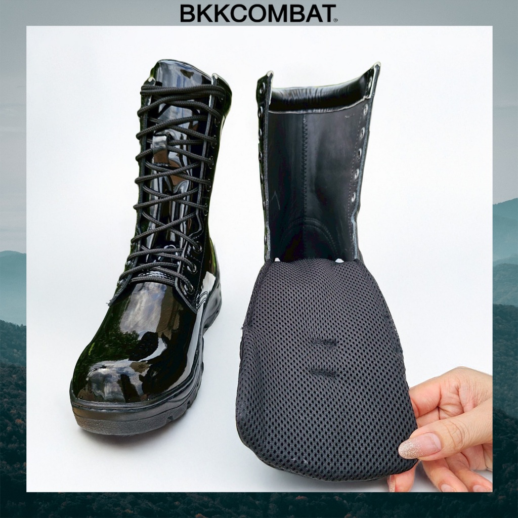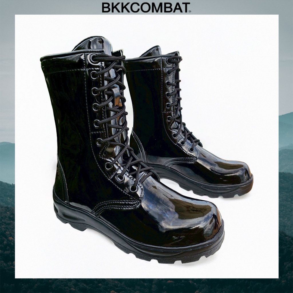 คอมแบท รหัส 821 ไม่มีซิป หนังแก้ว พื้นรถถัง งานผ้าแก้ว หนังสังเคราะห์ สูง10นิ้ว ทรงwหัวโต เบาที่สุด