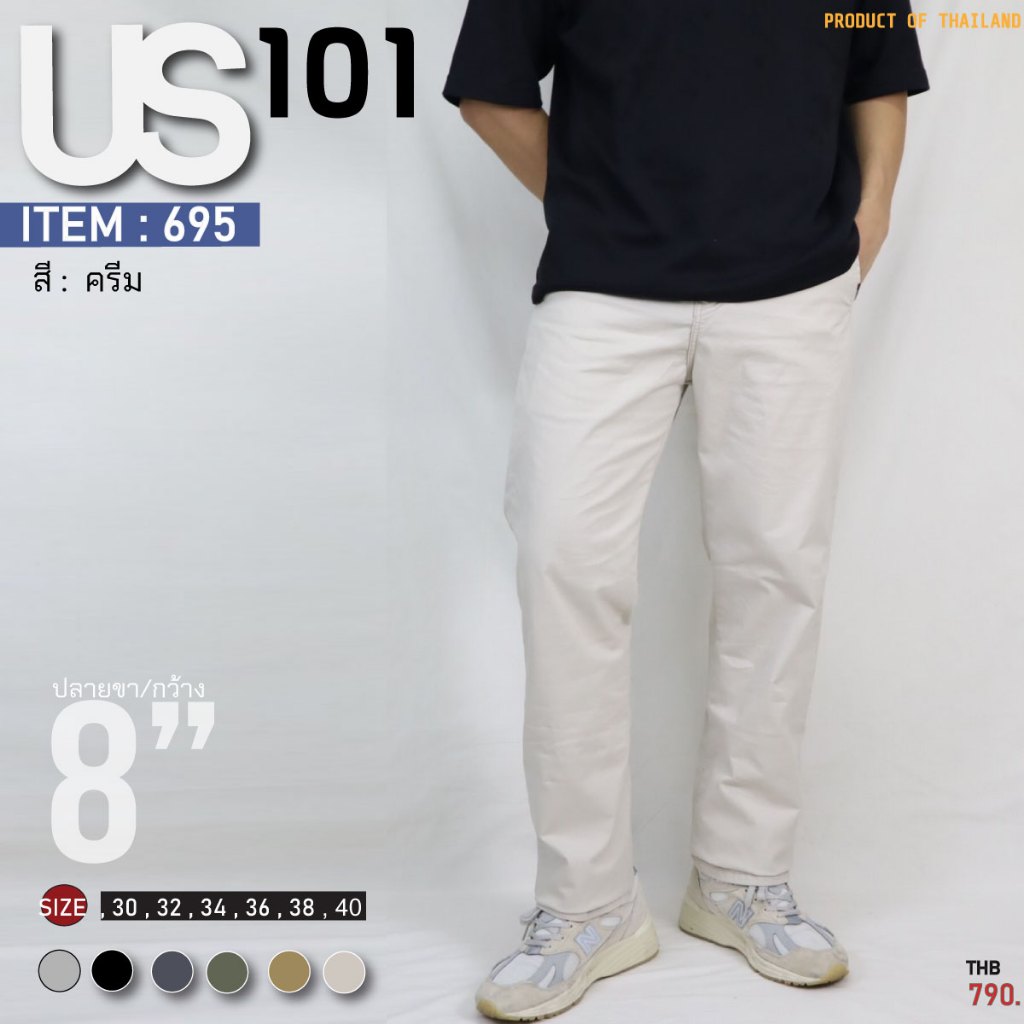 US101กางเกงสแลค US-695 ทรงกระบอก REGULAR ผ้ายืด Cotton Spandex ใส่สบาย ฟอกนุ่ม สีไม่ตก ไซส์ 30-40 พรีเมี่ยม 6 สีให้เลือก
