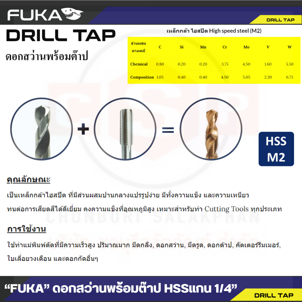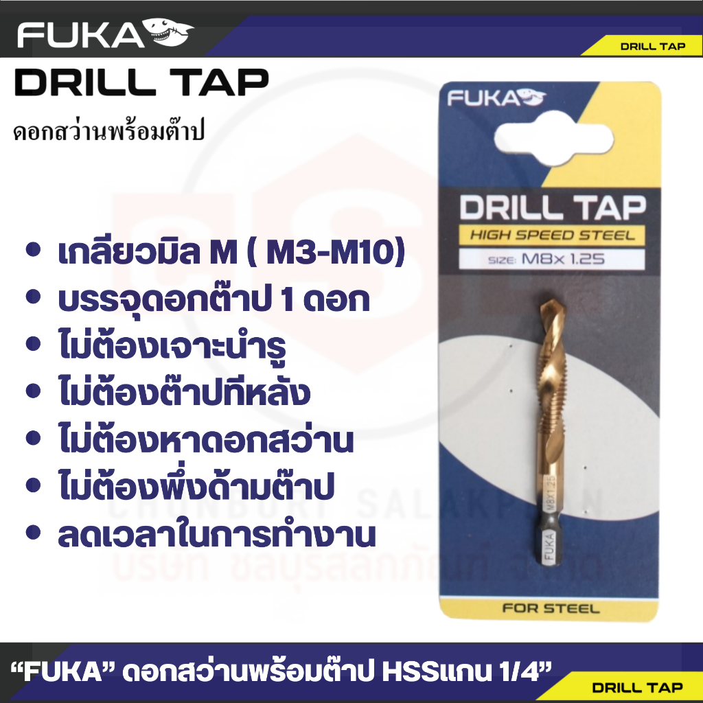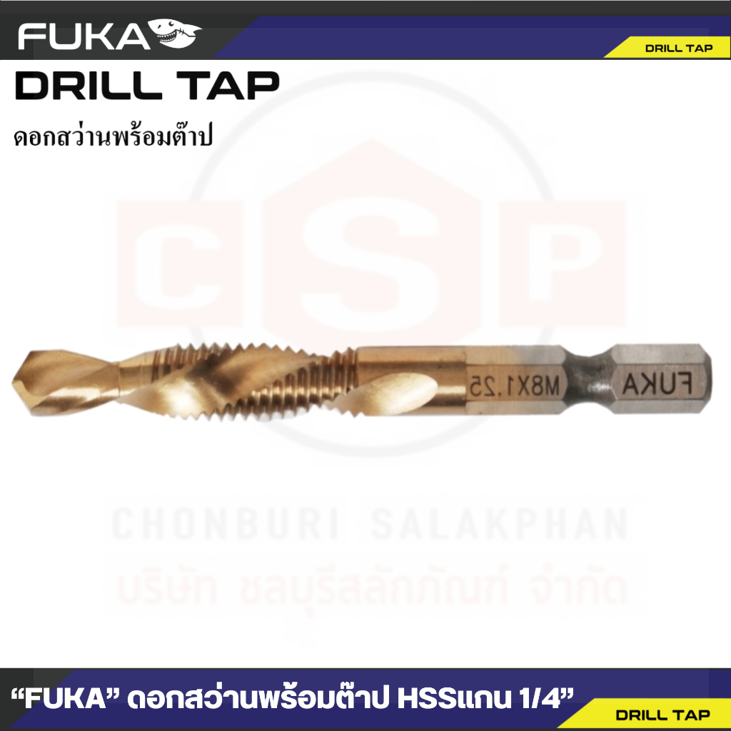 FUKA ดอกสว่านพร้อมต๊าป HSS M2 แกน 1/4 ขนาด M3-M10mm. เกลียวมิล ไม่ต้องเจาะนำรู ไม่ต้องต๊าปทีหลัง