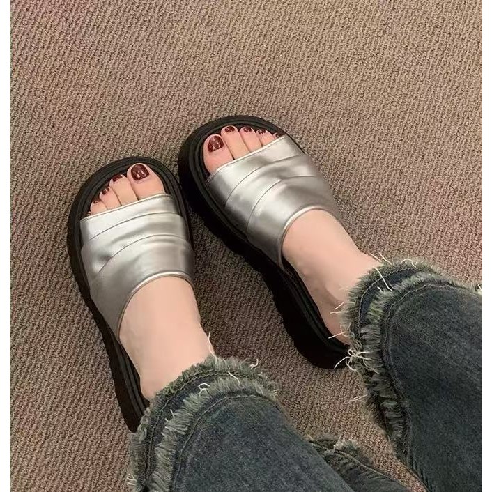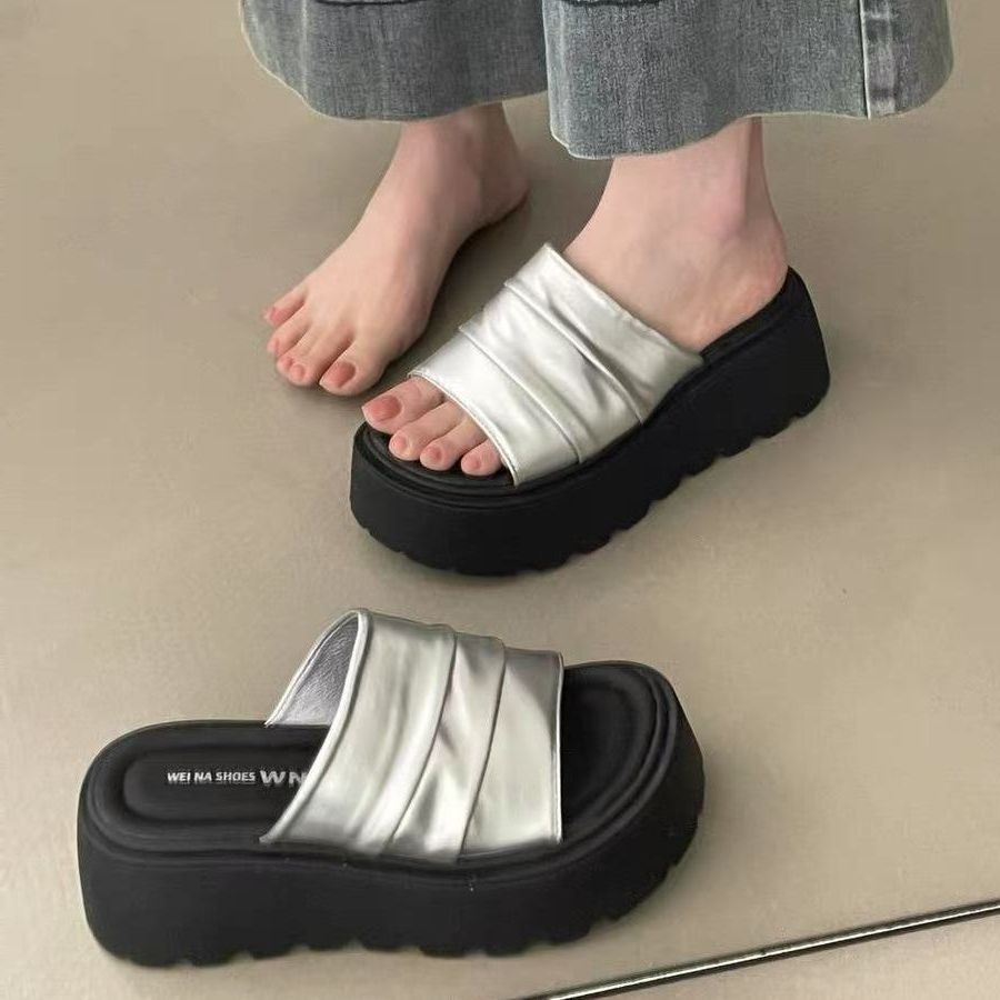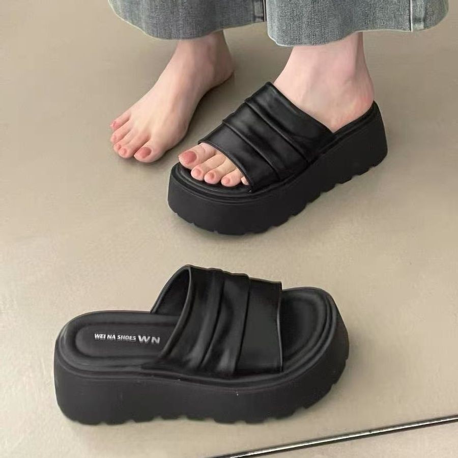 One for all พร้อมส่งจากไทย TX700 รองเท้าเเตะแบบสวมหนังพียู หนา6CM ฤดูร้อน กันลื่น พื้นนิ่ม ใส่สบาย สำหรับผู้หญิง