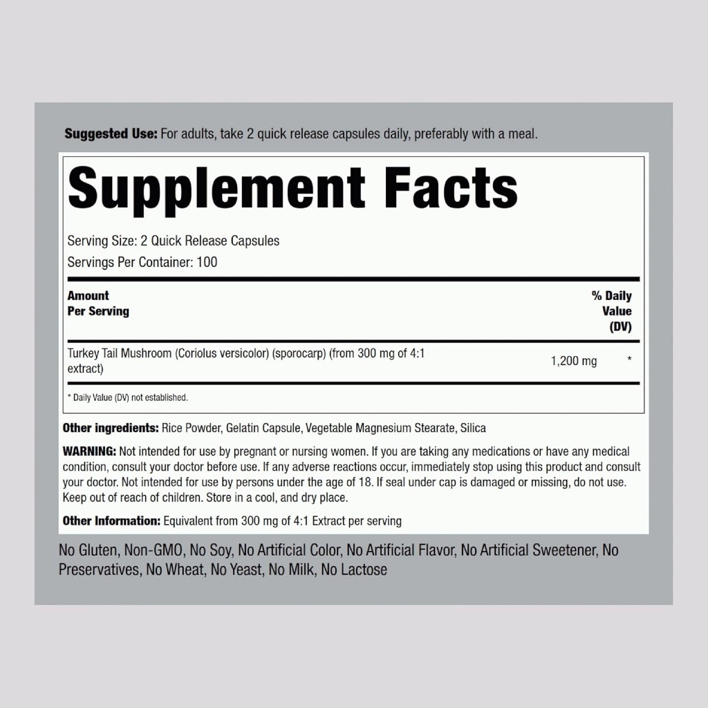 Piping Rock Turkey Tail Mushroom 1200mg | 200 Capsules | Coriolus Versicolor