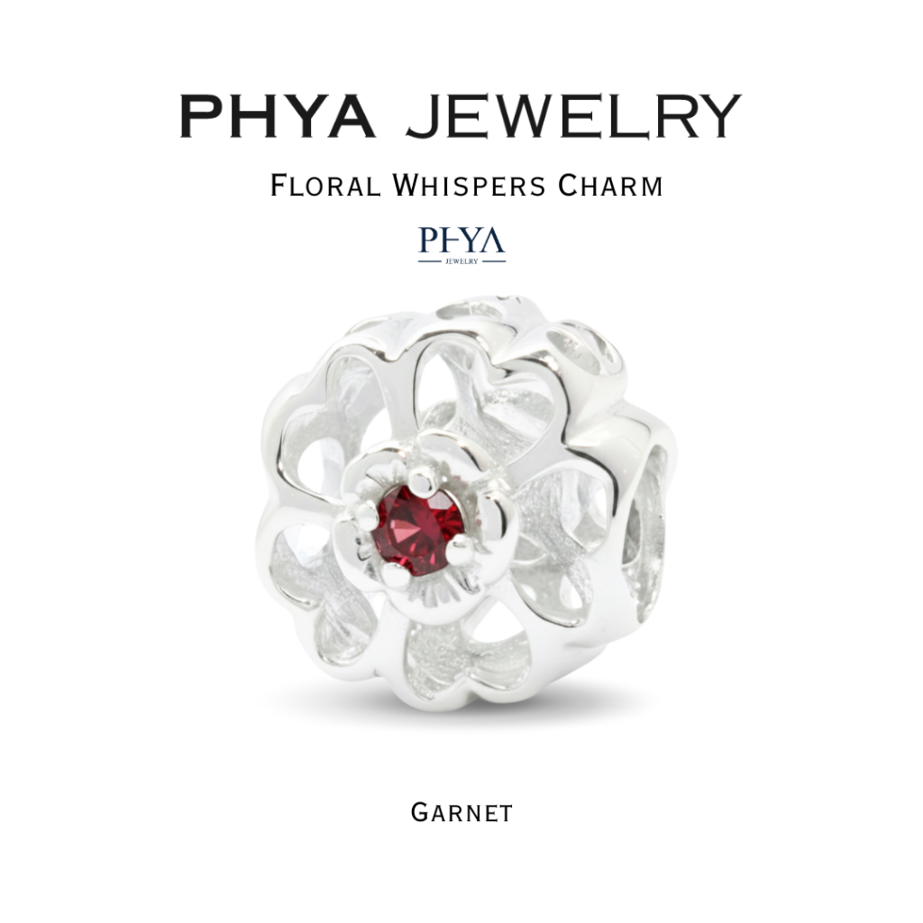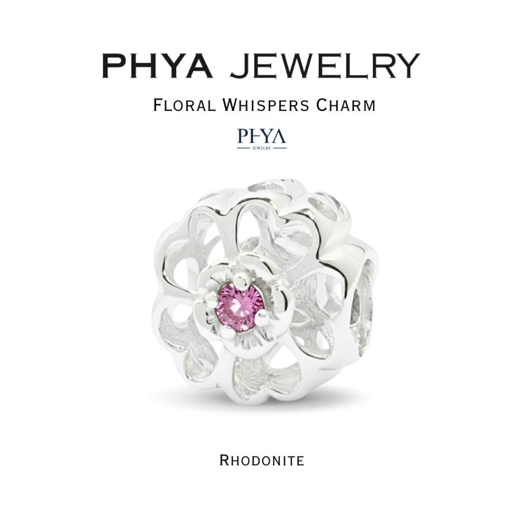 PHYA Floral Whispers Charm : ชาร์มดอกไม้ประดับพลอยแท้ (มีพลอยให้เลือก 2 สี) เงินแท้
