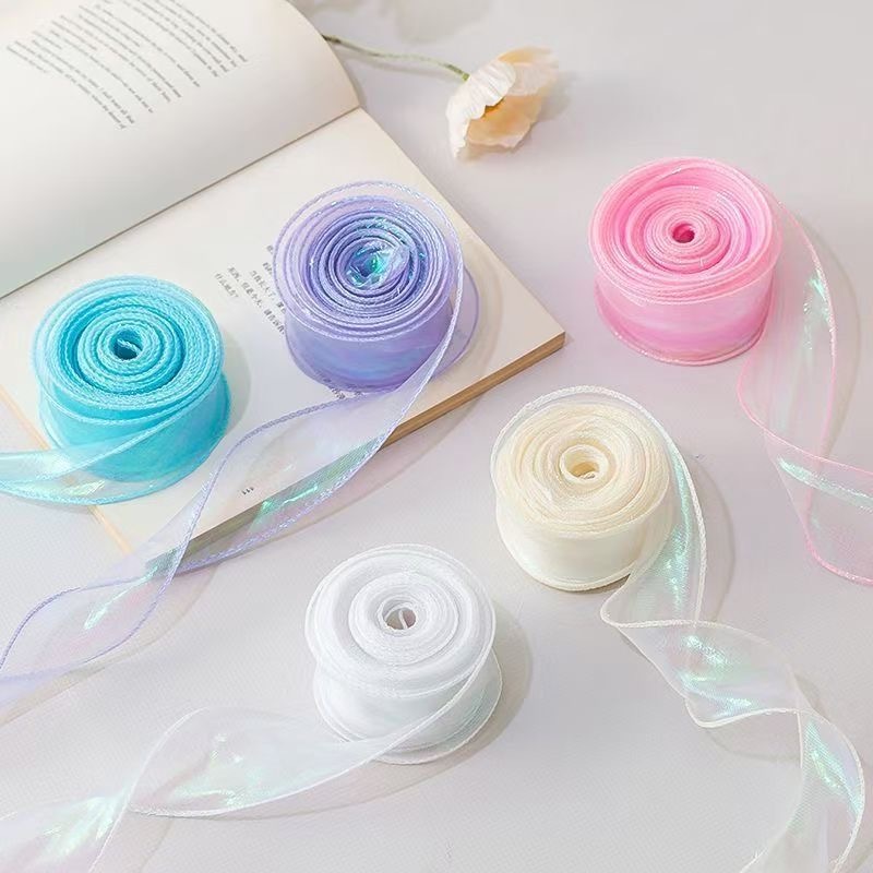 ริบบิ้น ริบบิ้นผ้าแก้ว สีพื้น 4cm/10หลา ห่อช่อดอกไม้ ห่อเคก ห่อของขวัญ