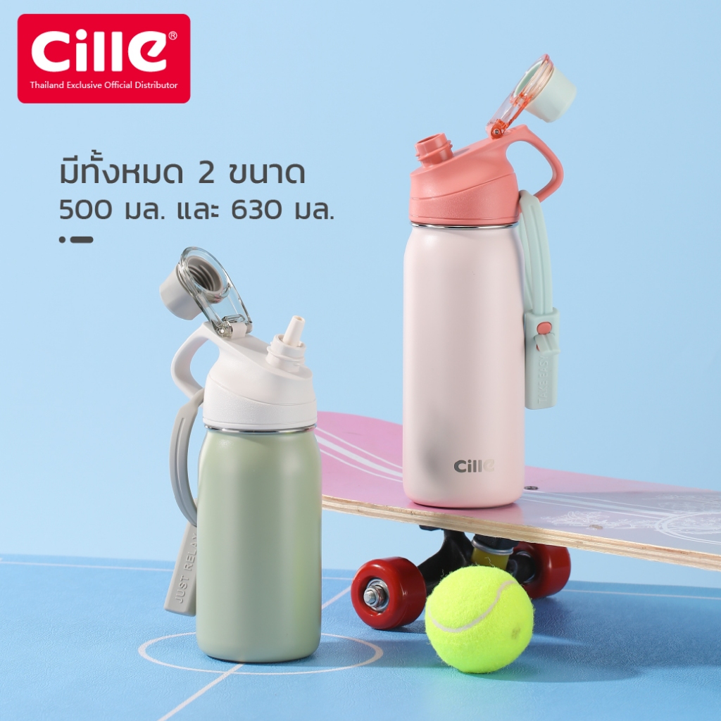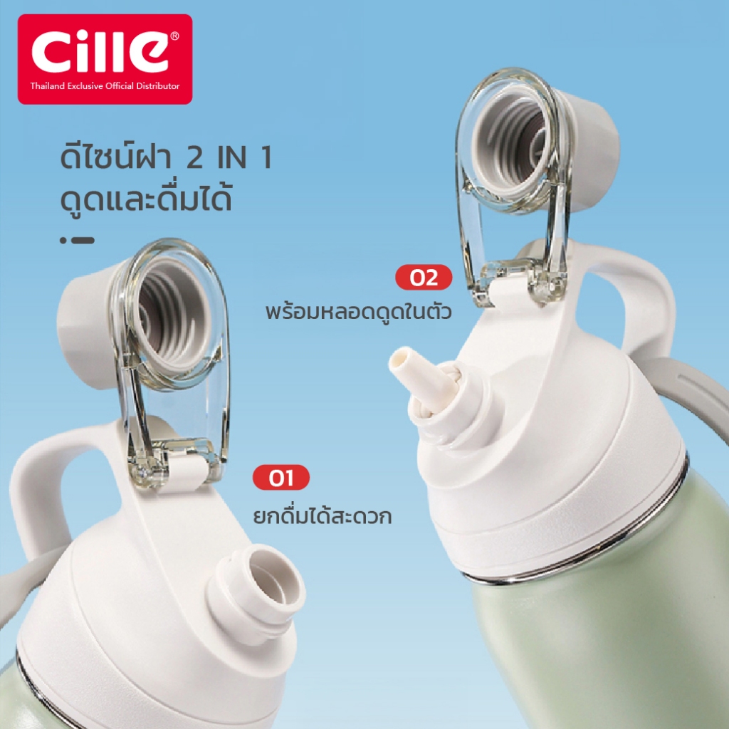 [รับประกัน 1 ปี] Cille Energy แก้วสแตนเลส 316 เก็บร้อน-เย็น ดื่มได้ 2 แบบ หลอดพร้อม Vacuum Bottle 500-630ml รุ่น 25139