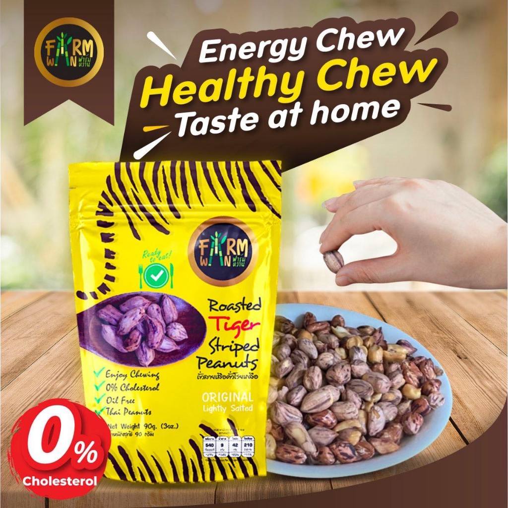 ถั่วลายเสือคั่วโรยเกลือ คอเลสเตอรอล 0% ตราฟาร์มหวาน 40 g. (แพ็ก 3 ห่อ)