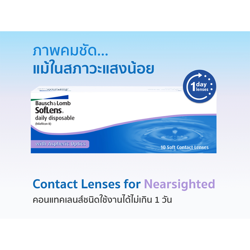 ซอฟเลนส์ เดลี่ ดิสโพสซิเบิล คอนแทคเลนส์รายวัน Bausch&Lomb SofLens Daily (แบ่งขายเป็นคู่)