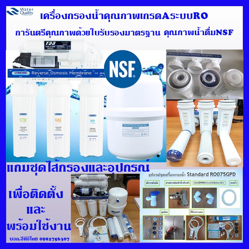 Standardเครื่องกรองน้ำรุ่น RO75GPD 5ขั้นตอนระบบROของแท้100%มาตรฐานNSFกรองน้ำกร่อยน้ำเค็มได้ดีที่สุด
