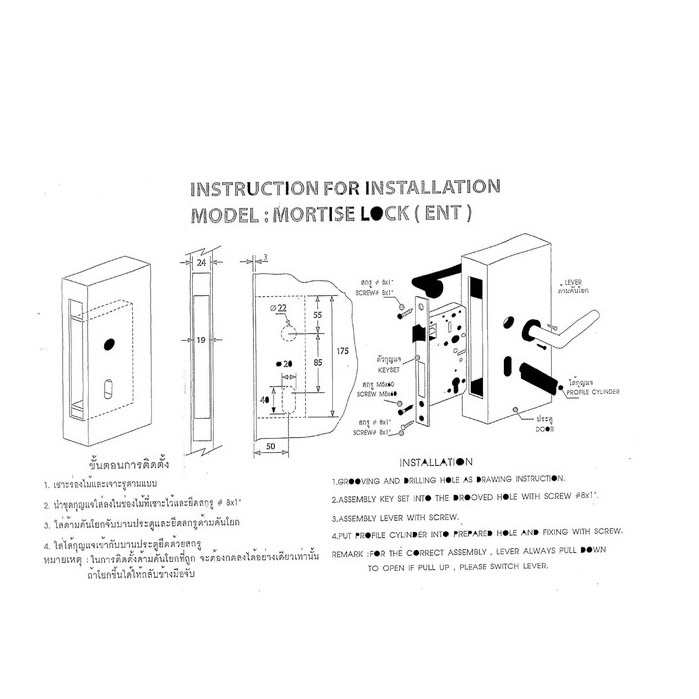 MORTISE LOCK ประตู รุ่น LM-TH002-C-SS ครบชุด มือจับก้านโยก แบรนด์ VVP(วีวีพี)