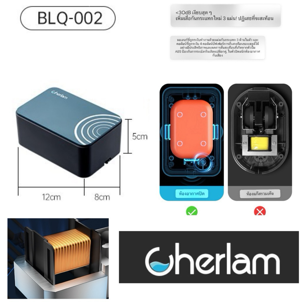 (แท้จากตัวแทน) Cherlam Billow Oxygen Air Pump รุ่น BLQ - 002 005 008 ปั๊มลม เงียบ ออกซิเจน ตู้ปลา ประหยัดพลังงาน 2 5 8 W