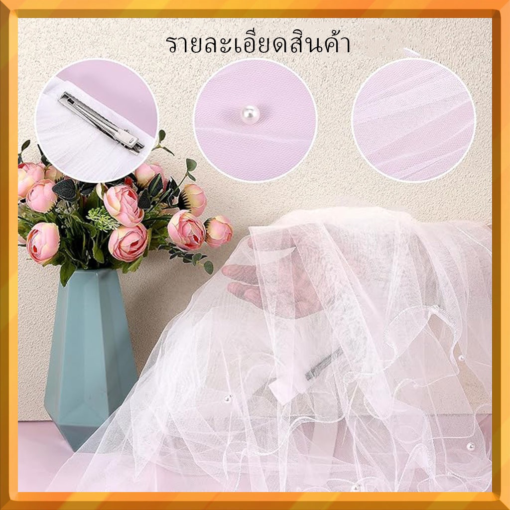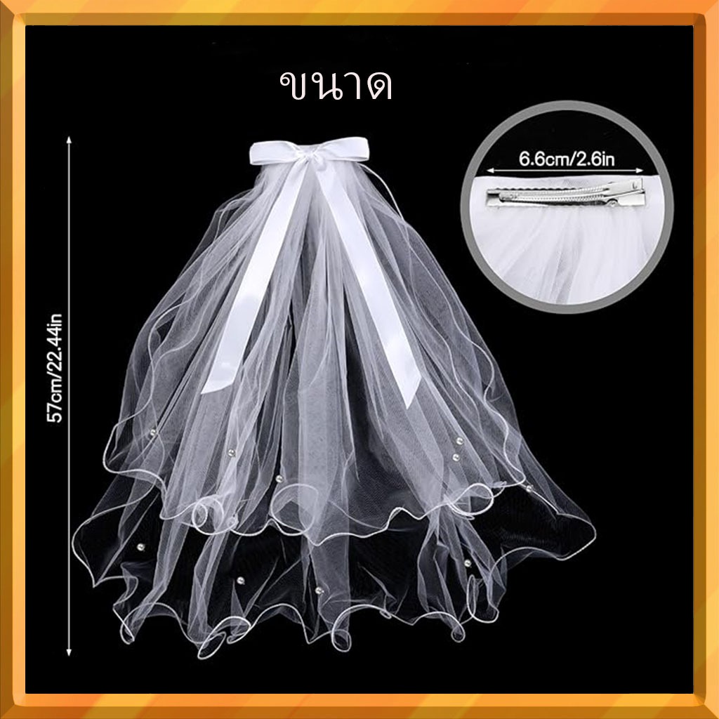 ผ้าคลุมหน้าเจ้าสาว 60ซม. | สีขาวงานเย็บมือ | ผ้าคลุมผมเจ้าสาวฟูฟ่อง | ผ้าคุณภาพสูง