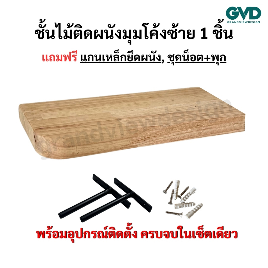 PL25-1 (ซ้าย)ชั้นวางมุมโค้งซ้าย ติดผนังพ่นสี ผลิตจากไม้พาราประสานและไม้ MDF พ่นสี *แถมฟรีแกนเหล็กชุดน็อตพุก