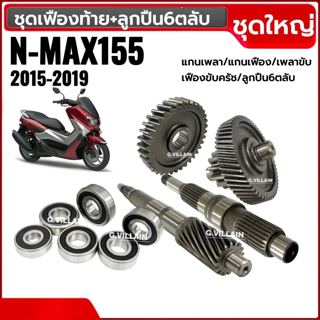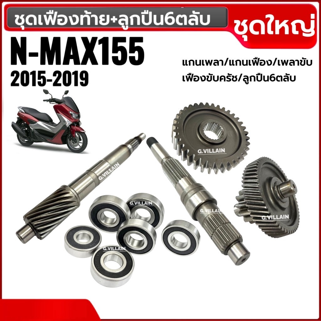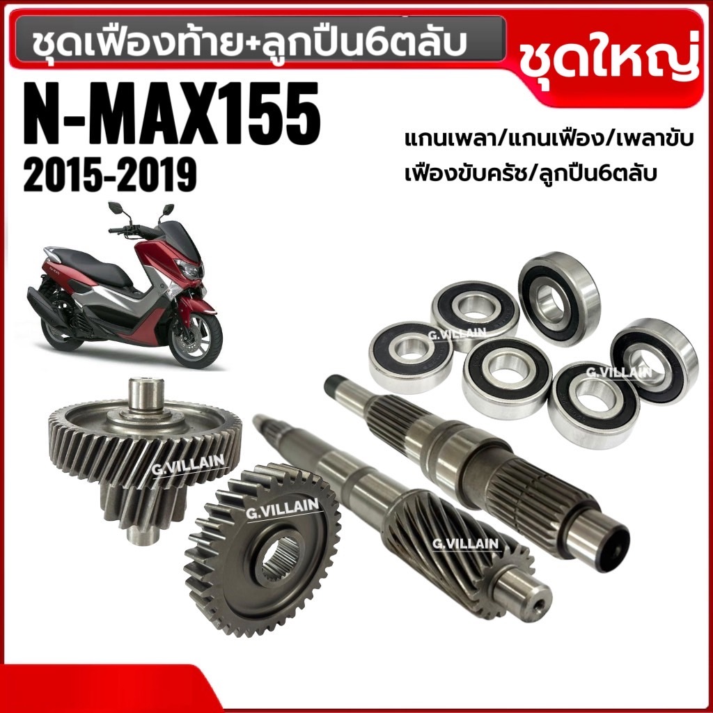 ชุดเฟืองท้าย +ลูกปืน6ตลับ NMAX155 ตัวแรก2015-2019 แกนเพลาขับ แกนเพลา เฟืองเพลาขับหลัง ชุดเฟืองเกียร์