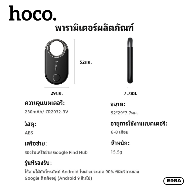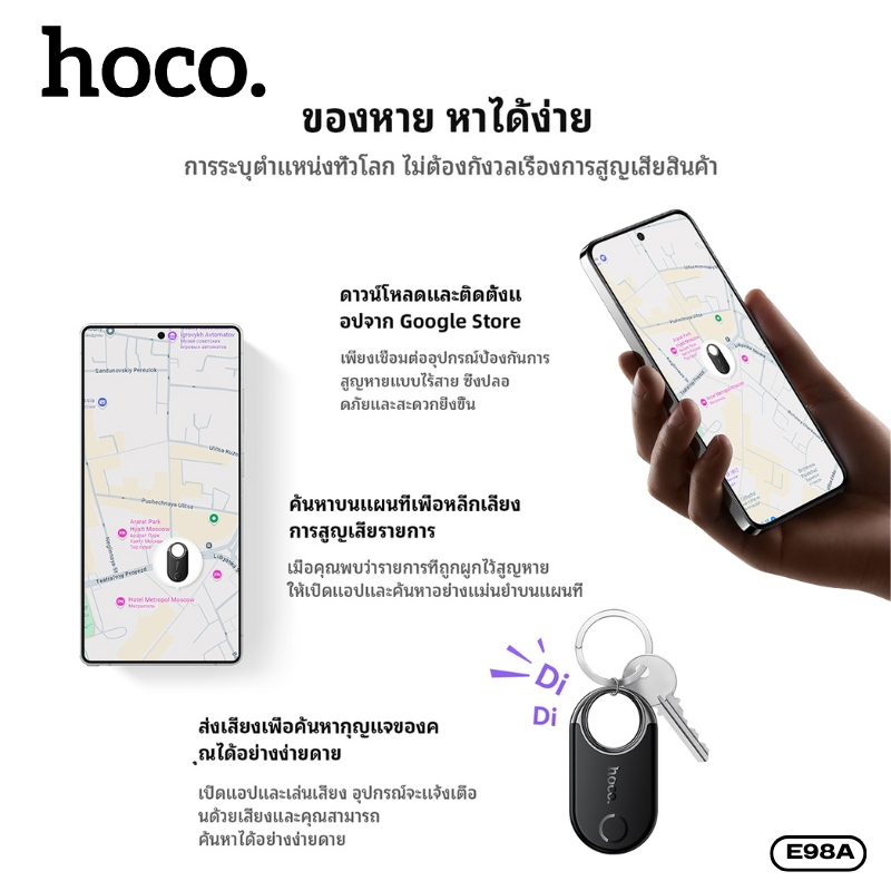 GPS Tracker ระบุตำแหน่ง สำหรับ Android HOCO E98A สีสันสดใส น้ำหนักเบา สามารถพกพา หรือใช้เป็นพวงกุญแจได้