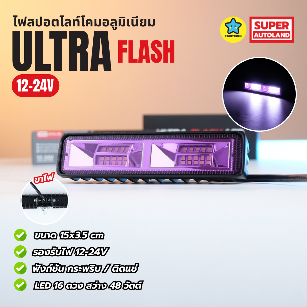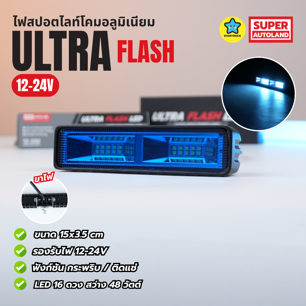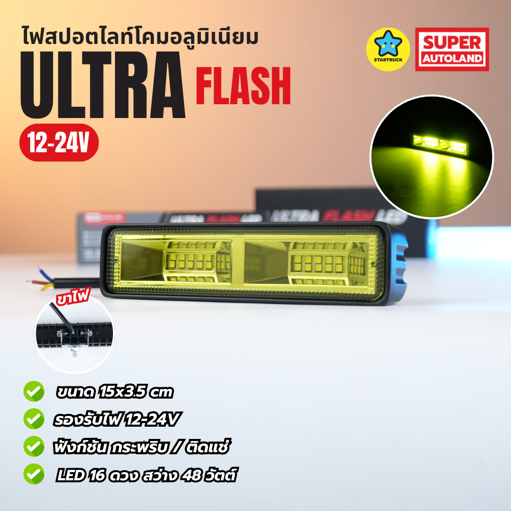 สปอตไลท์ ที่ใช้เป็นไฟเดย์ไลท์ได้ รุ่น Ultra 48W โคมอลูมิเนียม ไฟสปอตไลท์สำหรับรถ 12-24V ขนาด15x3.5cm