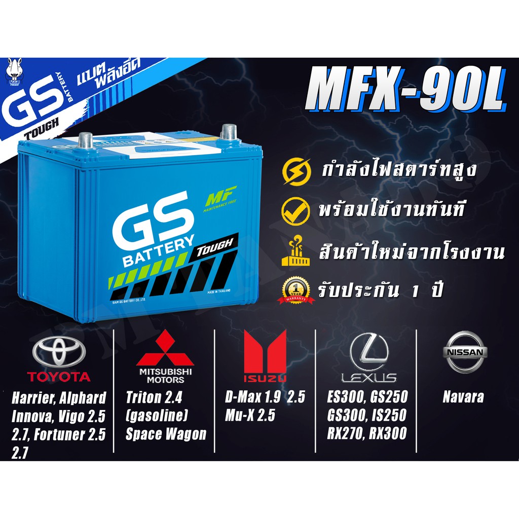 ส่งด่วน GS MFX-90L/R (80Ah) 85D26 Battery แบตรถยนต์ กึ่งแห้ง แท้ ใหม่ ไม่ต้องเติมน้ำ พร้อมใช้ MFX90L