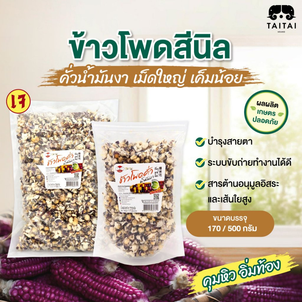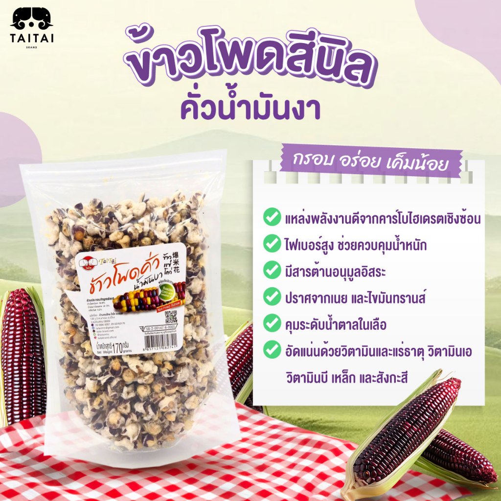 เจ ป็อปคอร์นดอย ข้าวโพดข้าวเหนียวคั่วน้ำมันงา (ตราไทไทแบรนด์) ข้าวโพดดอยจากแม่ฮ่องสอน กรอบ สด ใหม่ เค็มน้อย ใช้น้ำมันงา