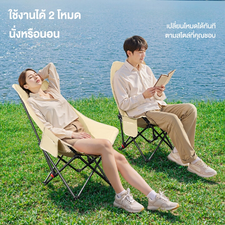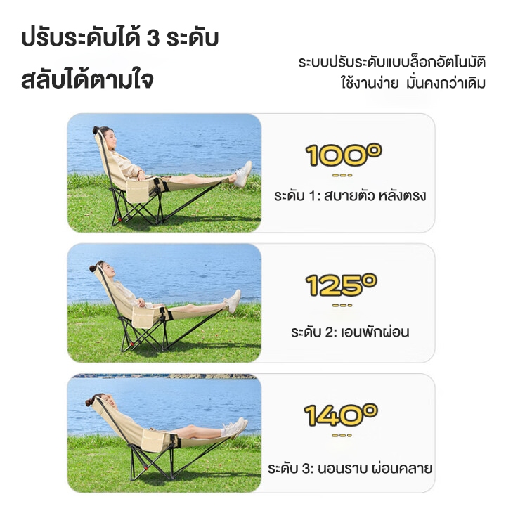 เพิ่มผ้าฝ้าย เก้าอี้พับกลางแจ้งปรับระดับได้ พร้อมที่วางขา เก้าอี้ camping ปิกนิก ประมง การนอนกลางวัน