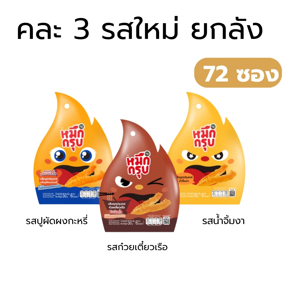 หมึกกรุบซันซุ หมึกกรุบปรุงรส เส้นบุกปรุงรสไม่มีคลอเรสตอรอล รสชาติใหม่ คละรสได้ (1 ลัง 72 ซอง)