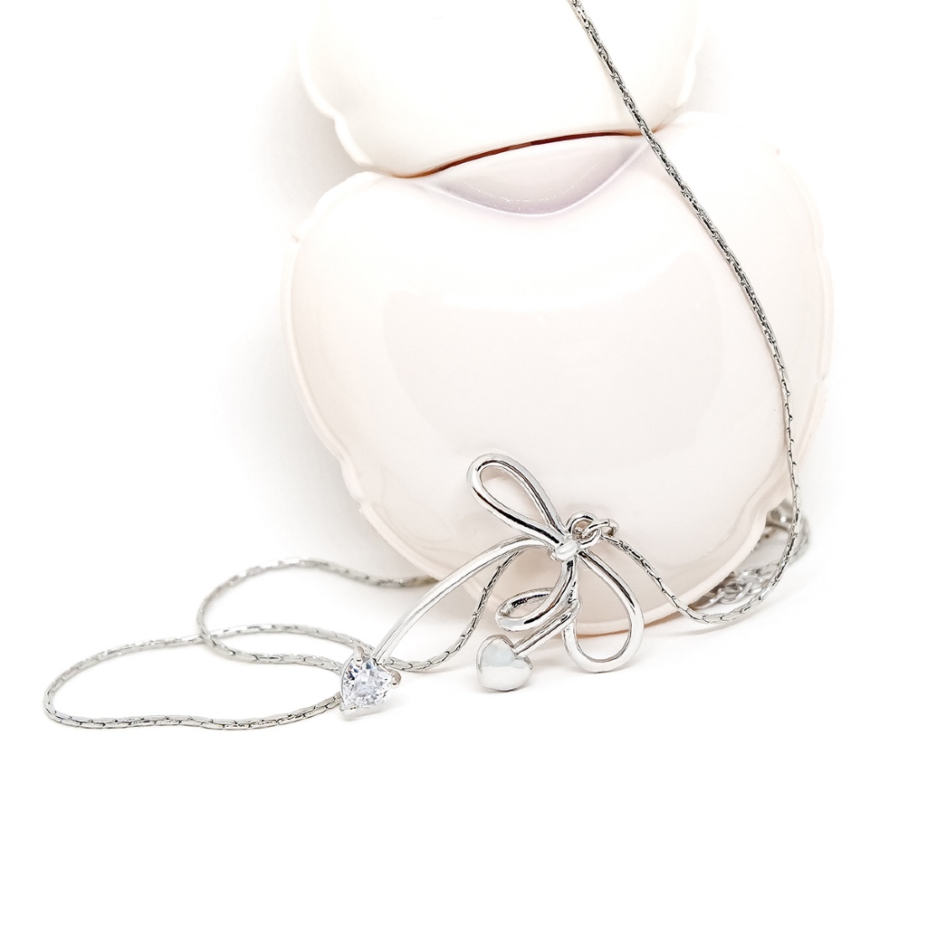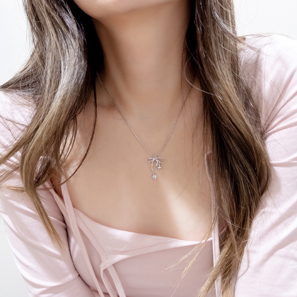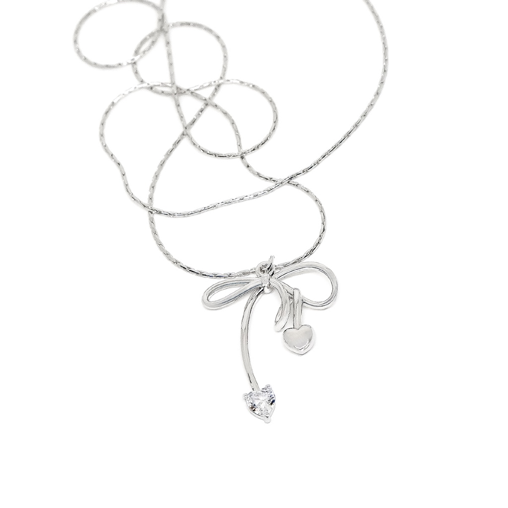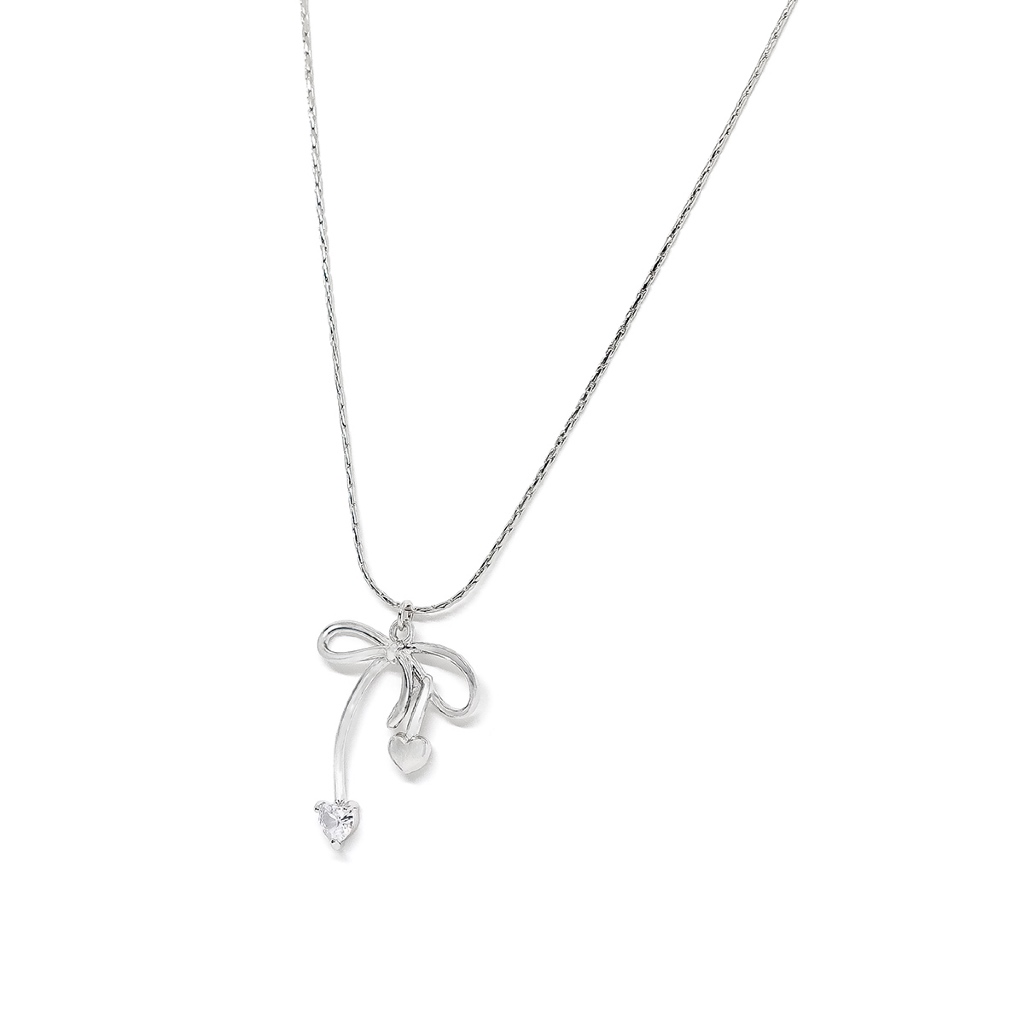 Fyne Fories Swoon Necklace ♡ สร้อยคอเส้นเรียบประดับโบว์ทรงพลิ้ว ปลายหัวใจ ดีเทลเล็กๆ♡ fynefories