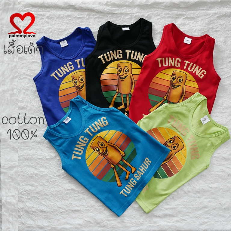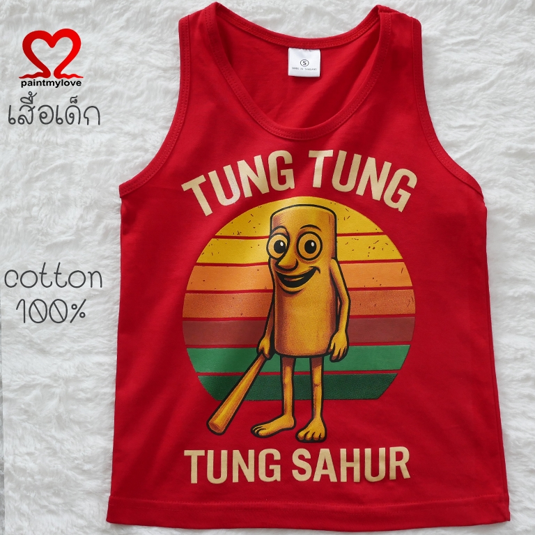เสื้อยืดเด็ก ลายการ์ตูนเจ้าท่อนไม้ TUNG TUNG TUNG ลายมาใหม่ cotton 100% ใส่ได้ทั้งชายและหญิง