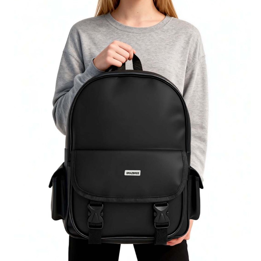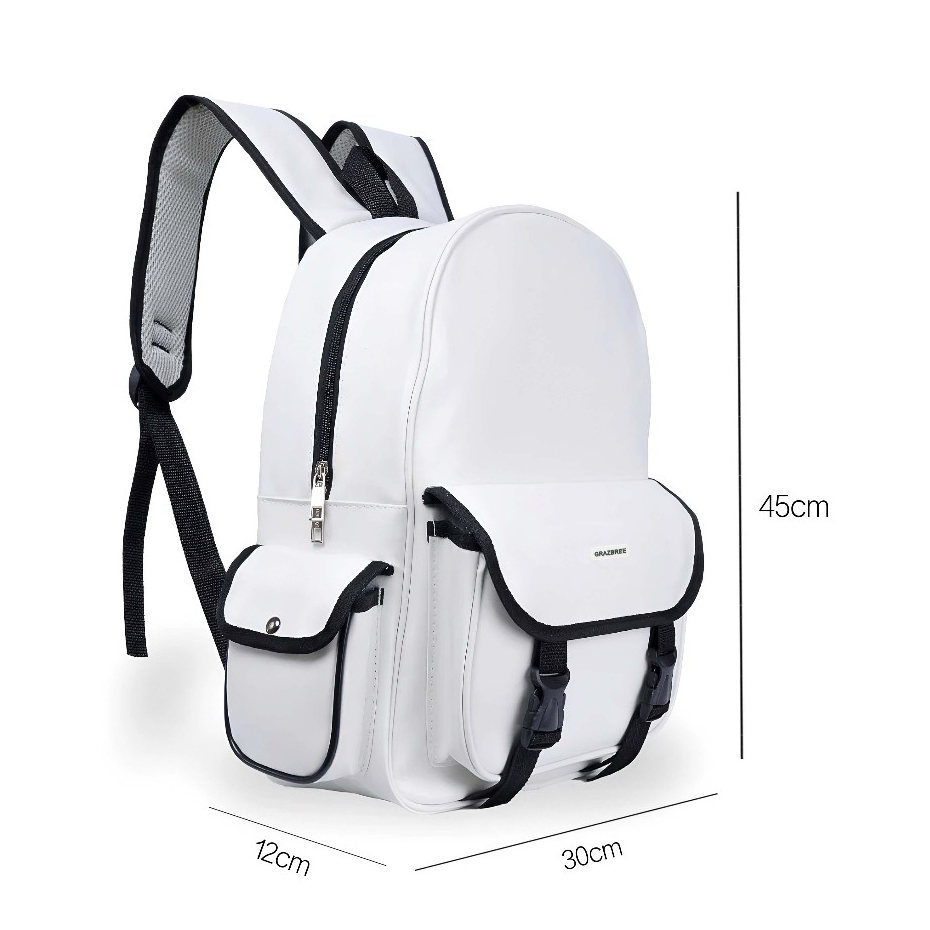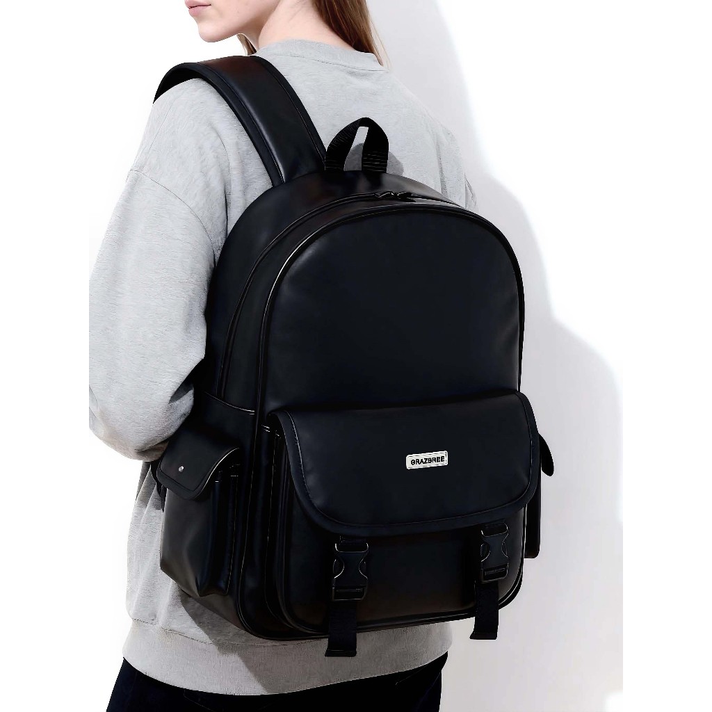 กระเป๋าเป้สไตล์เกาหลี หนัง PU กันน้ำ 100% สำหรับโน้ตบุ๊ค 15 นิ้ว ทรงไม่แฟบ Unisex
