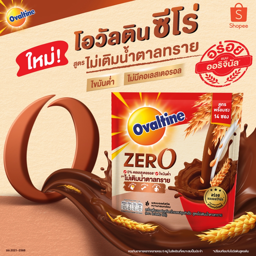 Ovaltine โอวัลติน 3อิน 1 สูตรซีโร่ ไม่เติมน้ำตาลทราย 30 กรัม รุ่น 14 ซอง