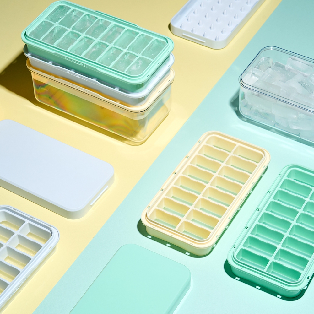 HOUSIMPLE MIDDLEPUSH ถาดทําน้ําแข็งเดี่ยวสําหรับตู้เย็นพร้อมซิลิโคนสี่เหลี่ยม