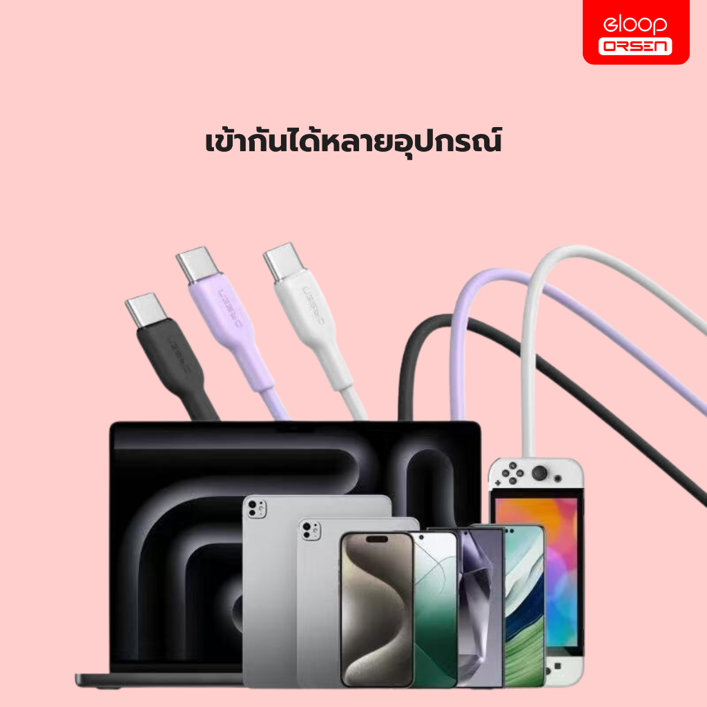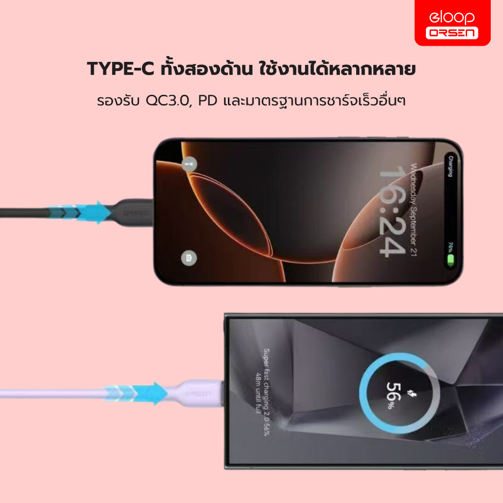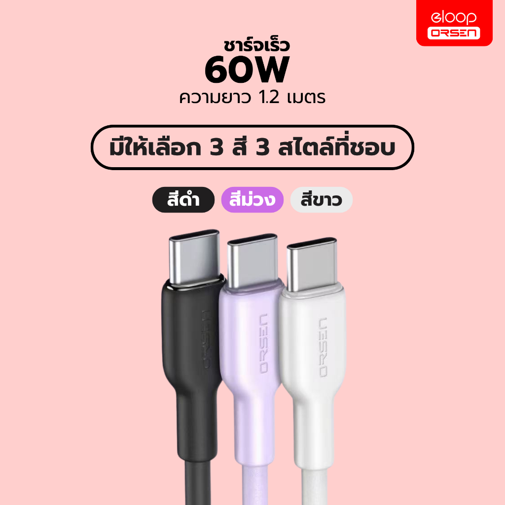 (ใหม่) Eloop S12 สายชาร์จเร็ว 60W Type-C to Type-C รองรับ PD/QC3.0 Fast Charge 3A ของแท้100%